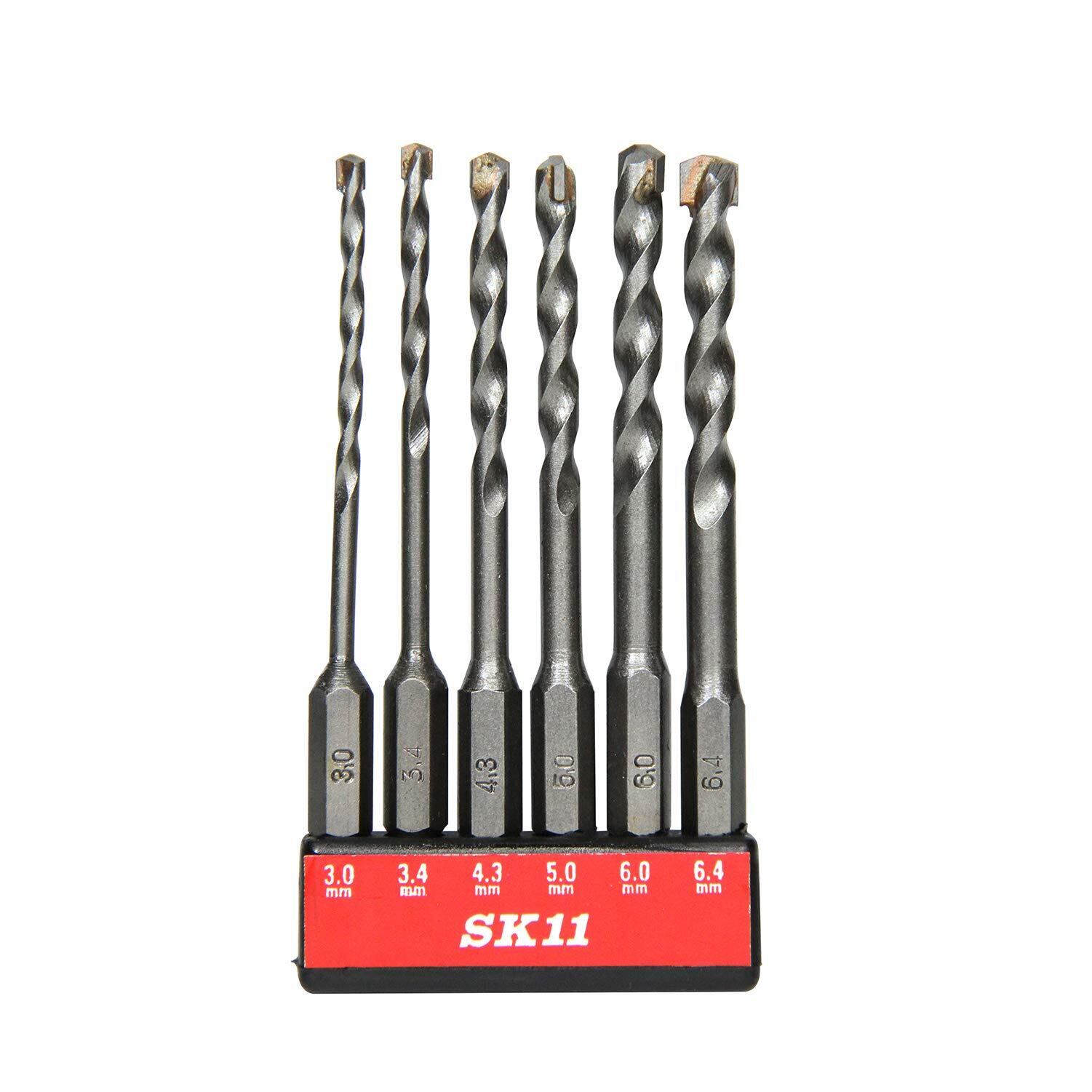 SK11(エスケー11) 六角軸 コンクリートドリルセット 6本組 3.0・3.4・4.3・5.0・6.0・6.4mm SICD-1