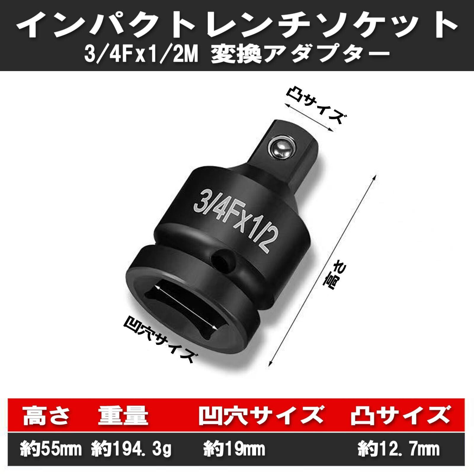 LEXOR インパクトレンチ ソケット 変換アダプター 凹19mm(3/4) → 凸12.7mm(1/2) ピン Oリング システム ピンホール ボール ドライブ タング