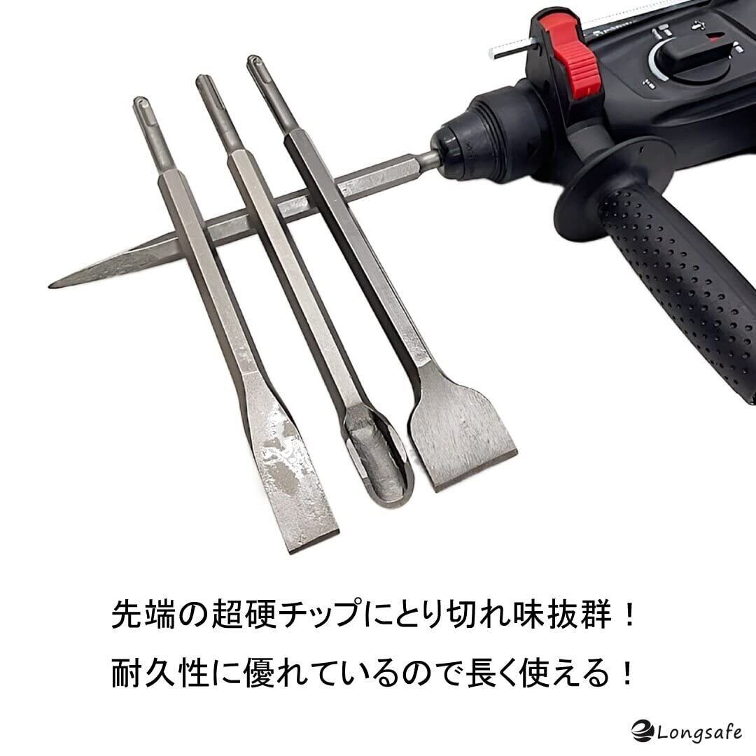 コンクリートやブロックなどを「割り」「削り」「斫り」作業に使用する、SDSプラスシャンク仕様の電動ハンマー用チゼルセットです。
