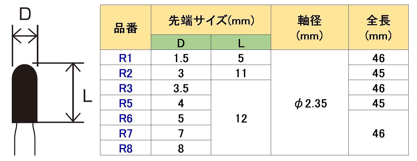 「本商品は、半丸形状で直径φ2.35mmの軸径を持ち、多様な素材に対応可能です。特に金属や硬質材の加工において、確かな威力を発揮し、幅広い作業シーンで活躍します。」