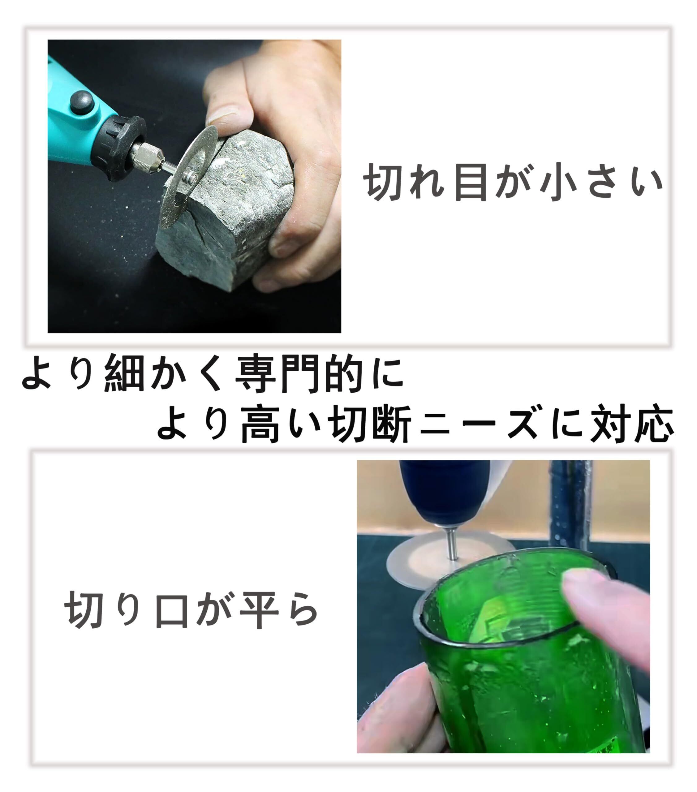「全てのダイヤモンドカッターは、厳選されたダイヤモンド素材を使用しており、優れた耐久性と切削力を誇ります。高精度な加工を可能にするため、金属やプラスチック、セラミックなどの素材にも対応。プロフェッショナルからDIY愛好者まで、幅広いお客様にご利用いただける高品質な商品です!」