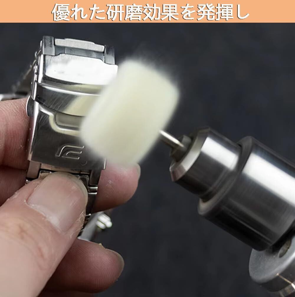 「本商品は、リューターに簡単に取り付けることができ、金属の磨き・つや出し・バリ取りなど、幅広い用途に応じてご使用いただけます。細かいところまで丁寧に仕上げることができるため、趣味の作品作りや仕事の際にも大活躍します。」