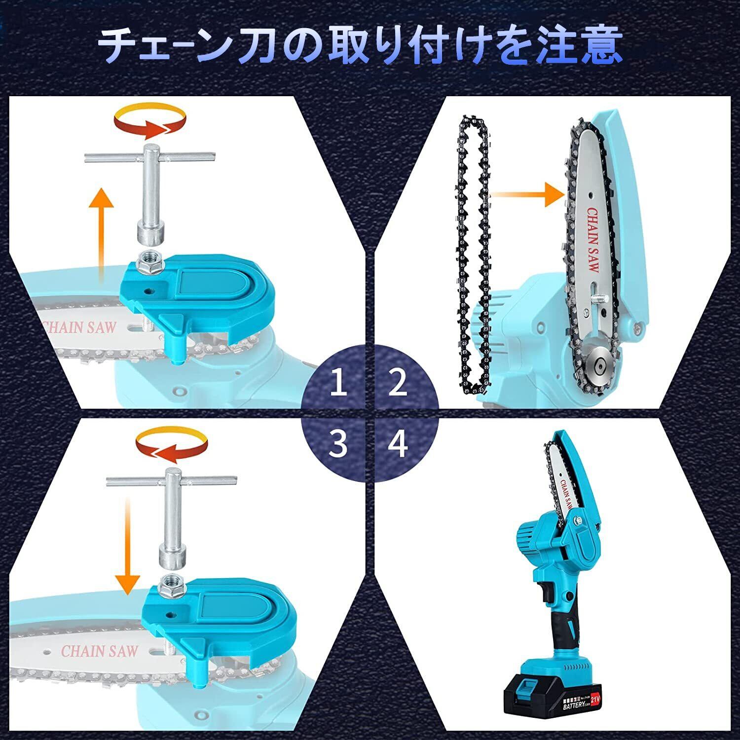 「『充電式 チェーンソー 替刃 8インチ』は、スムーズに取り付けができる設計で、面倒な調整が不要です。初めての方でも安心してすぐに作業を開始でき、プロフェッショナルにも満足いただけるアイテムです。」