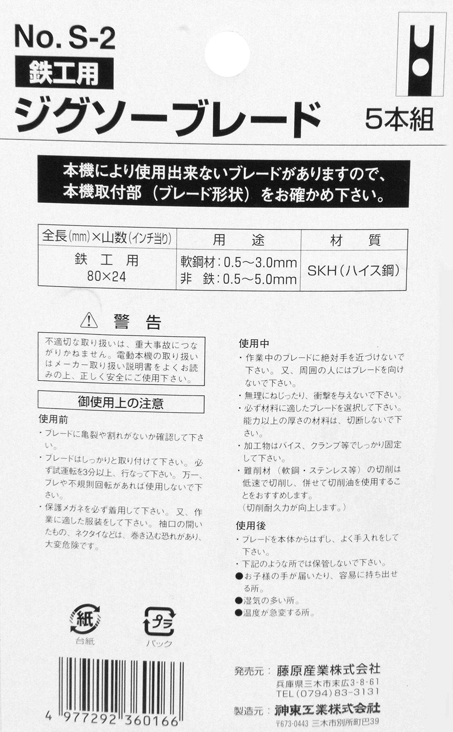 SK11(エスケー11) ジグソーブレード 兼用タイプ 鉄工用 5枚入り S-2