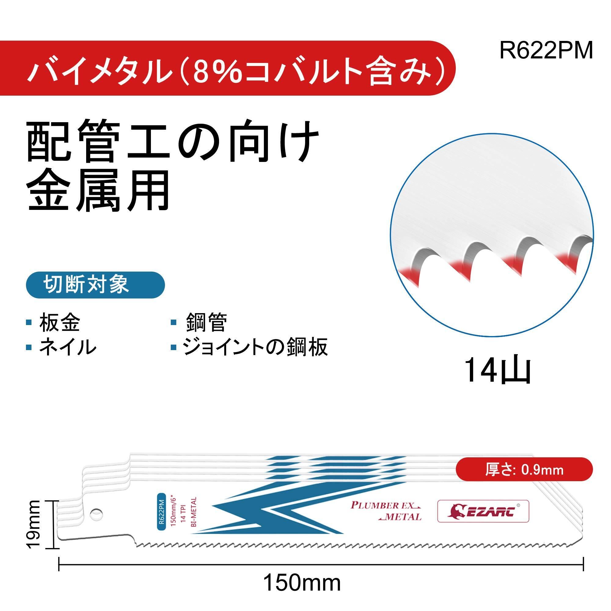 EZARC(イザーク) レシプロソー替刃 全長150mm 14山 バイメタル 8%コバルト 金属用 鉄·非鉄金属用 解体用 R622PM (5本入)