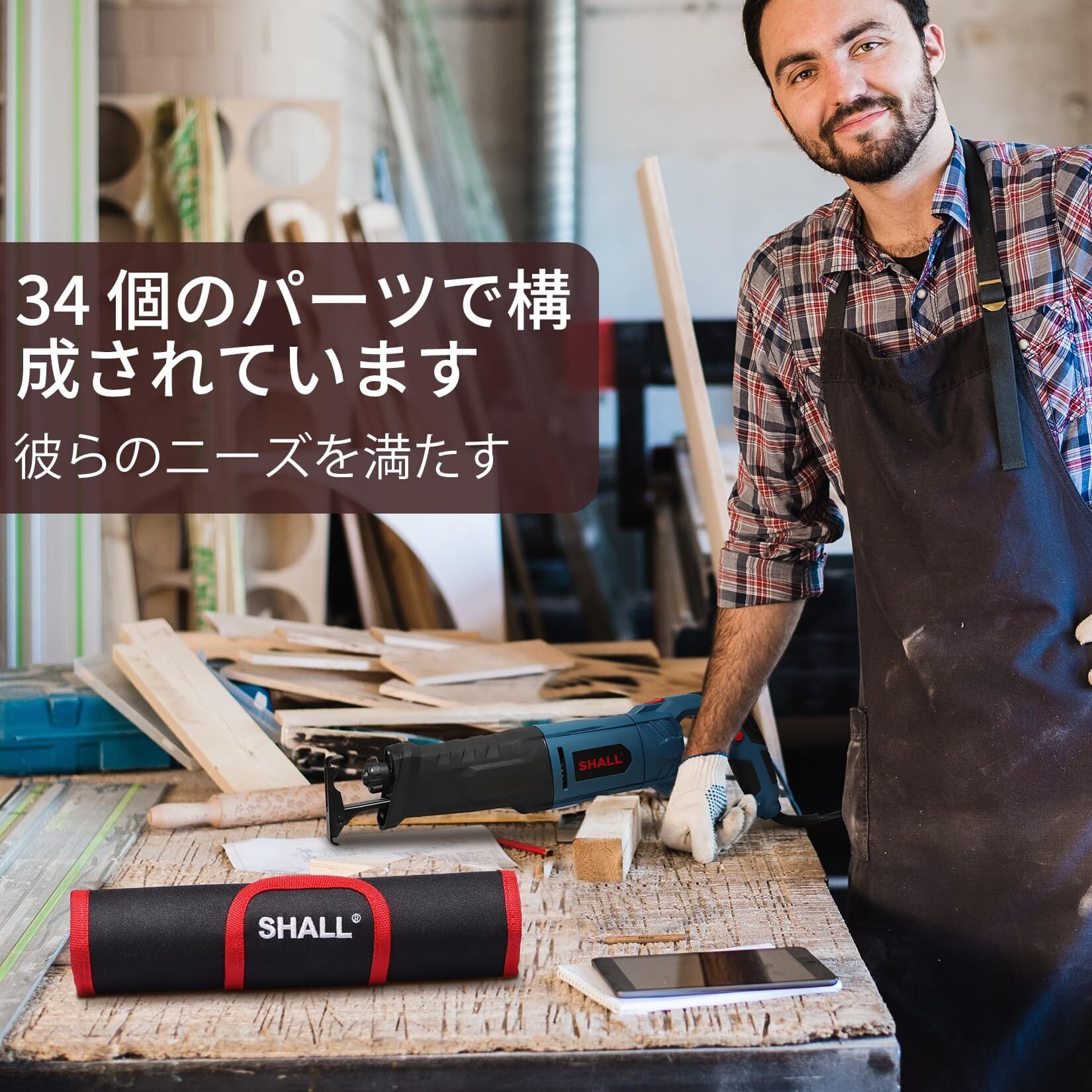 SHALL 34点组レシプロソー替刃、電気のこぎり替え刃 ソーブレードキット 木の剪定用 木材、金属、プラスチック用 収納バッグ付き