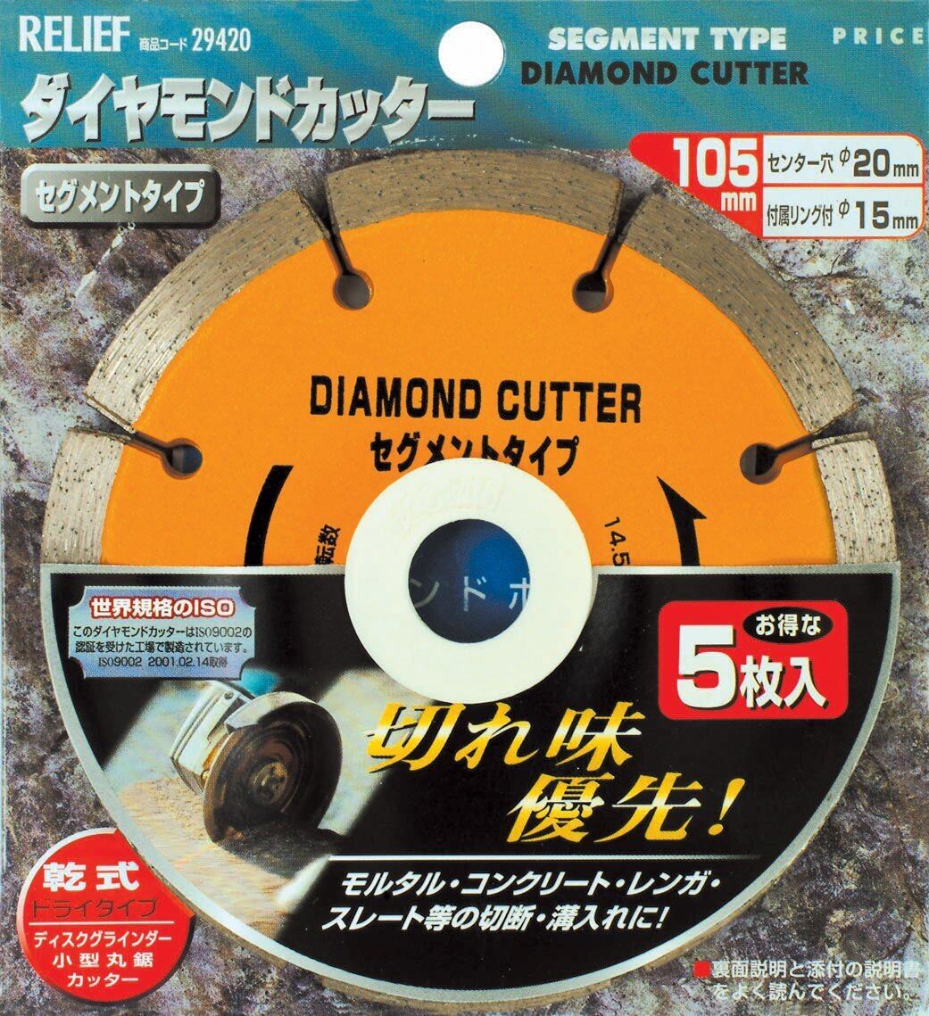 **\イチネンアクセス RELIEF(リリーフ) ディスクパーツ ダイヤモンドカッター 105mm 5枚組 29420 セグメントタイプ(橙色)/**