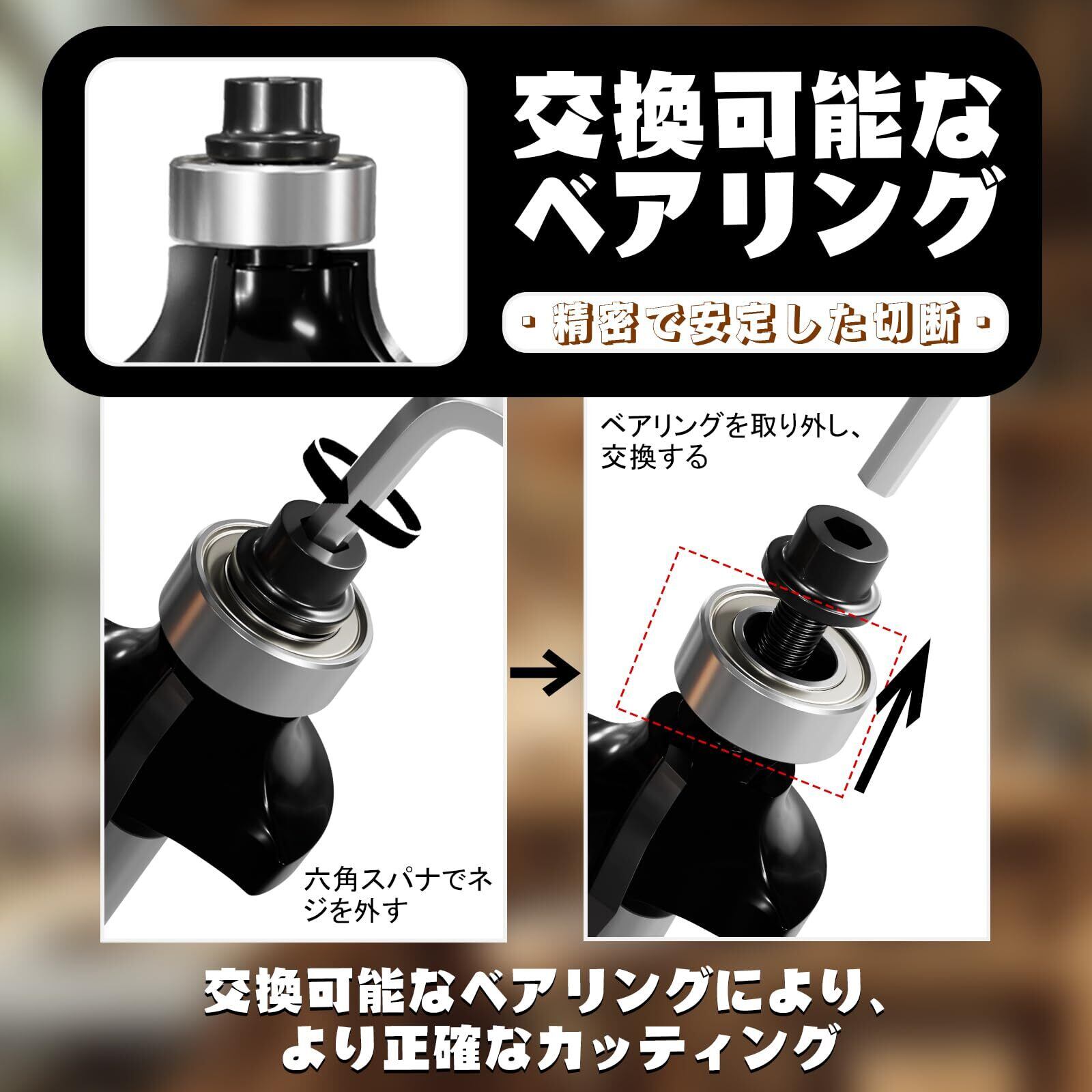 4本コロ付丸面ビット マキタ トリマー用 ベアリング付き (丸面仕上げ対応 6mm軸)木工 DIY 仕上げ用 ルータービット 高精度 滑らかな丸面加工