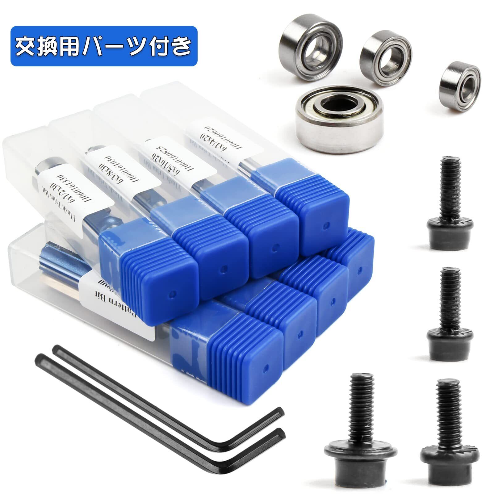セット内容:ストレートビット4本+面取りビット4本+ペアリング4個(交換用)+六角レンチ2本+プラスチックネジ4個 1個ずつケース詰めされ、保存しやすく、錆びにくいです。