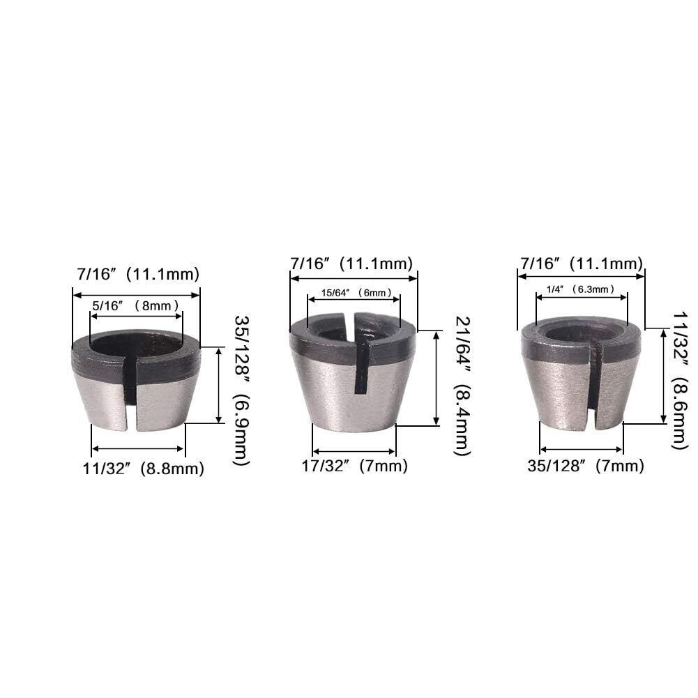 **\トリマー用 コレットチャック 1/4インチ 6mm 6.35mm 8mm 3本セット/**