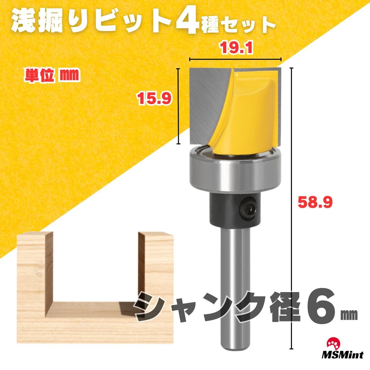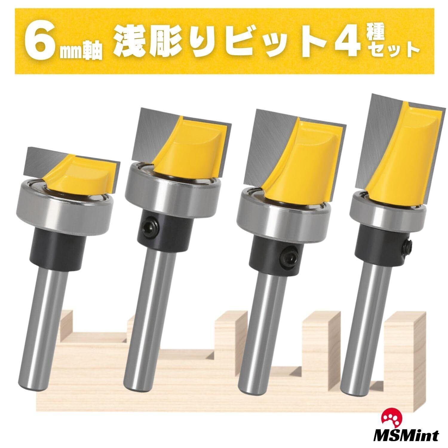 MSMint ルータービット トリマービット 6㎜軸 浅彫り ほぞ ホゾ 段欠き(浅彫りビット 4本セット)