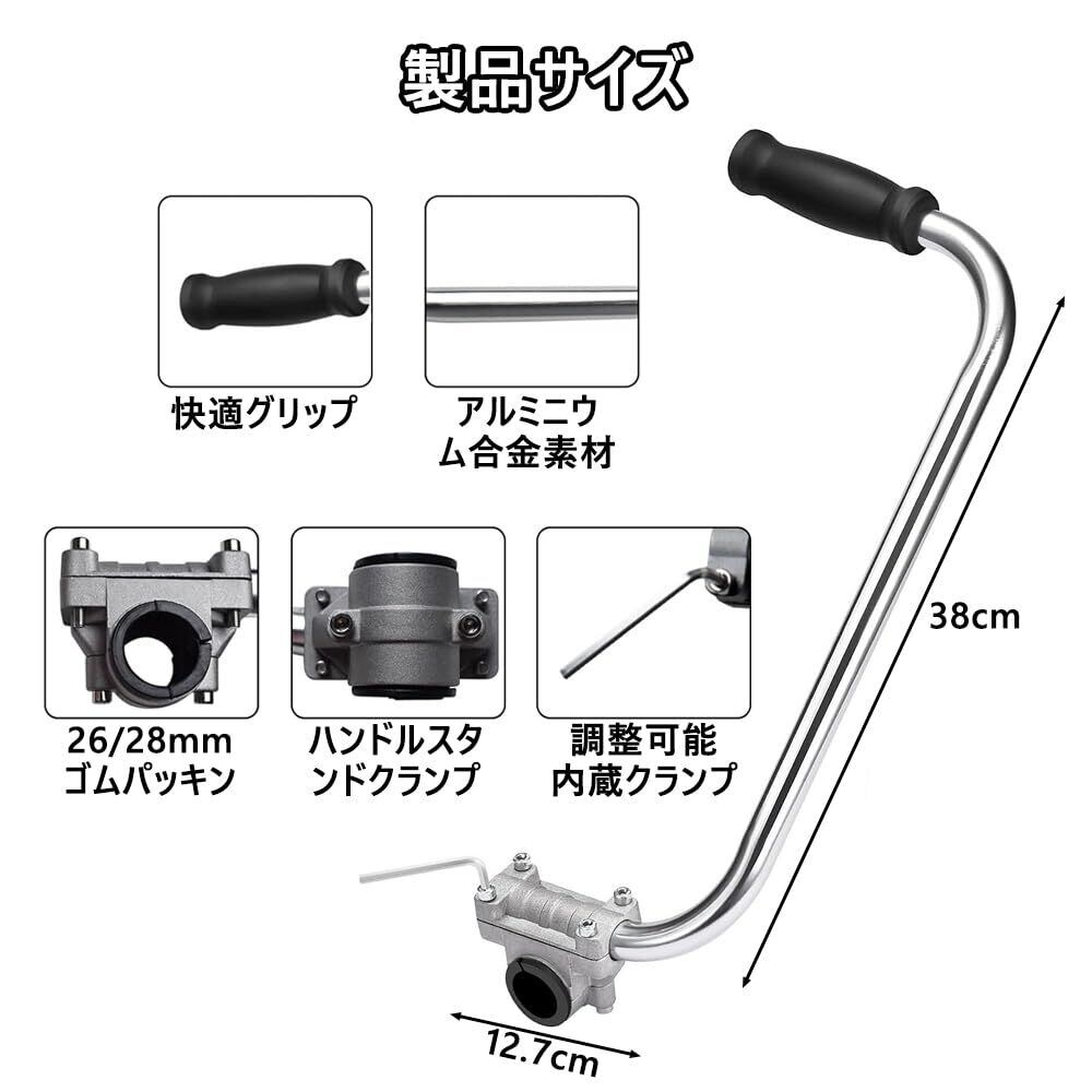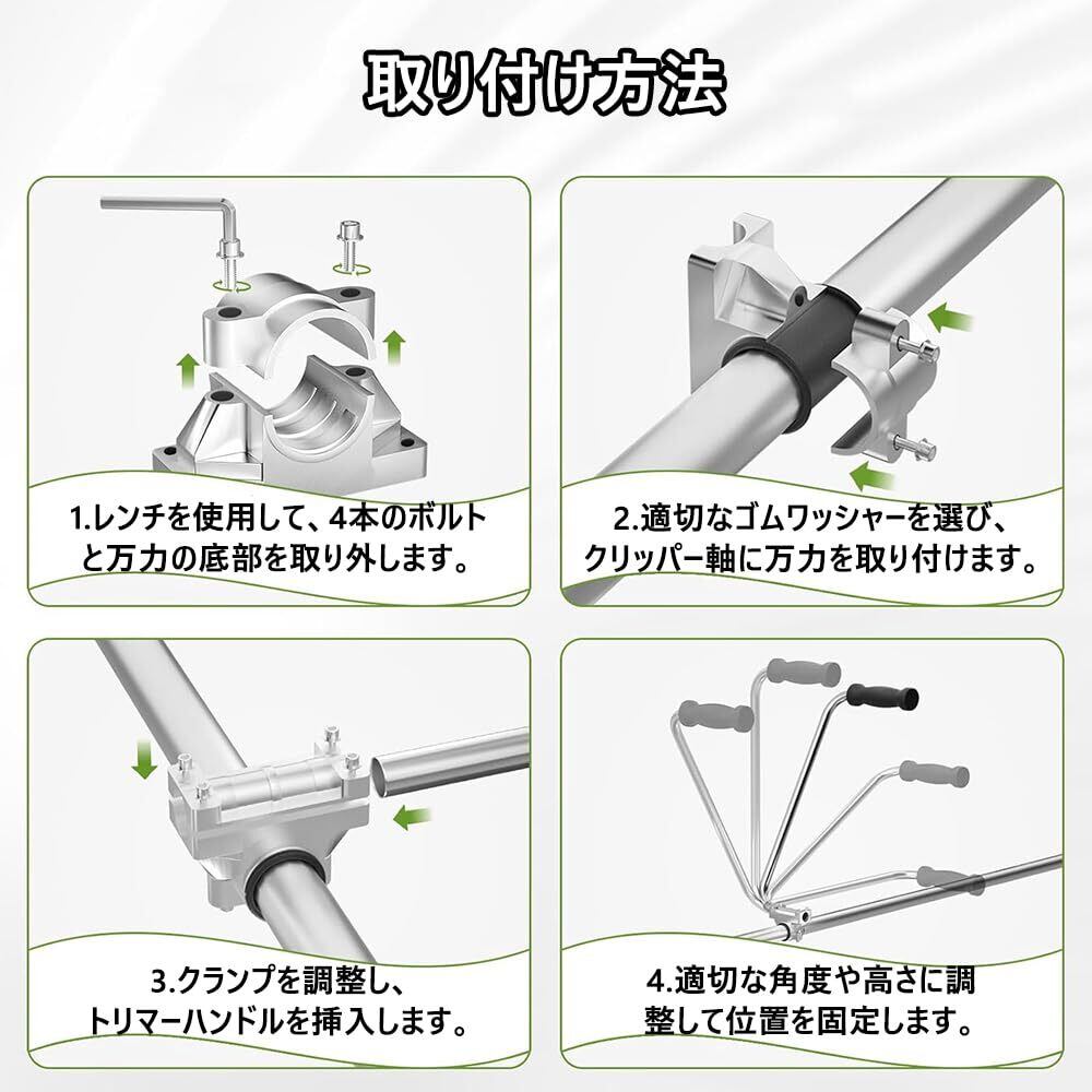 「このハンドルは、幅広い草刈り機や草取り機と互換性があり、簡単に取り付けることができます。道具を変えることなく、様々な作業に対応できるのが特徴です。これにより、常に最適なパフォーマンスで作業を進めることができます。」