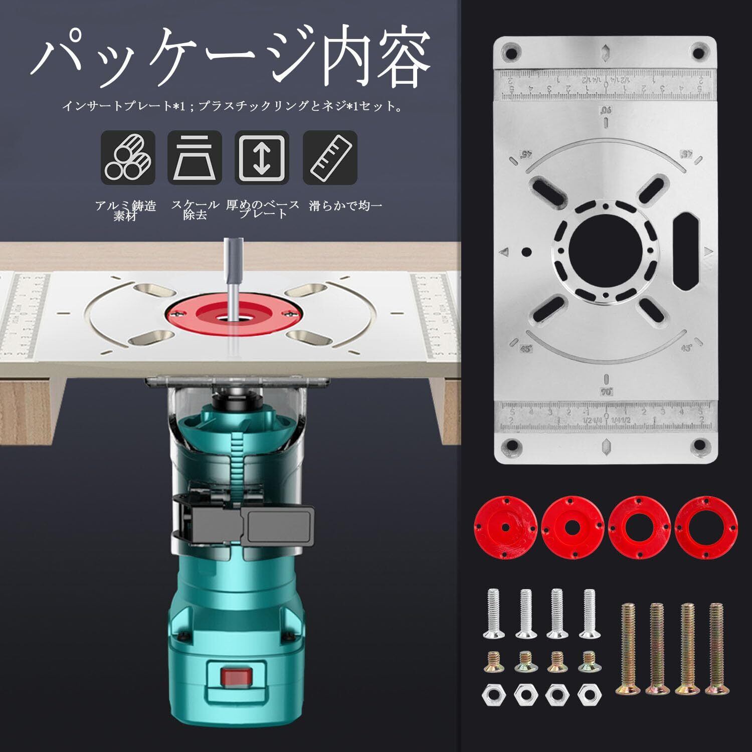 Wolfride ルーターテーブル インサートプレート アルミ製 トリマーマシンプレート リング ネジ付き トリマー昇降アクセサリー DIY道具 木工ツール