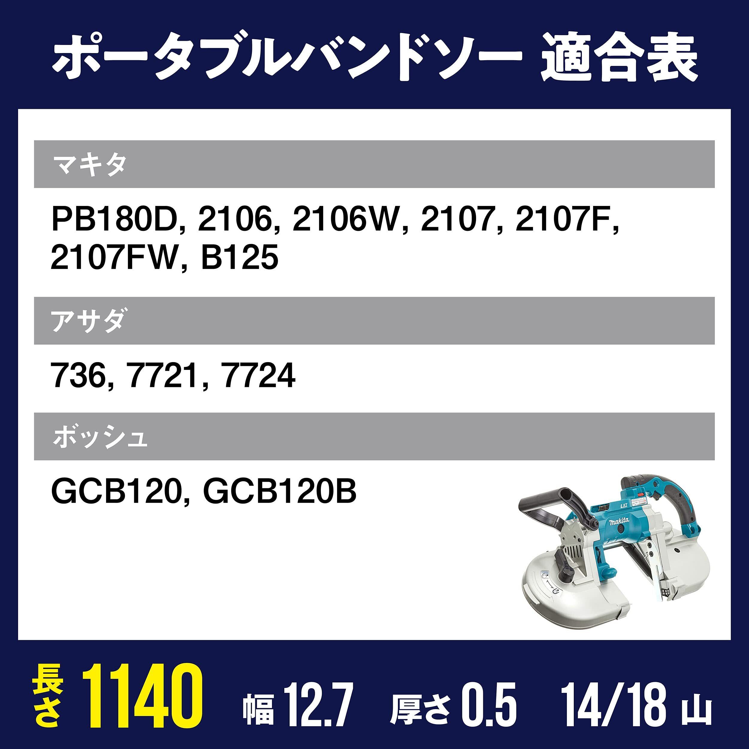 のこぎりキング バンドソー替刃/マキタ PB180D,PB001G,2106,2106W,2107,2107F,2107FW,B125用 1140×12.7×0.5 14/18山 ステンレス・鉄用 (5本入)