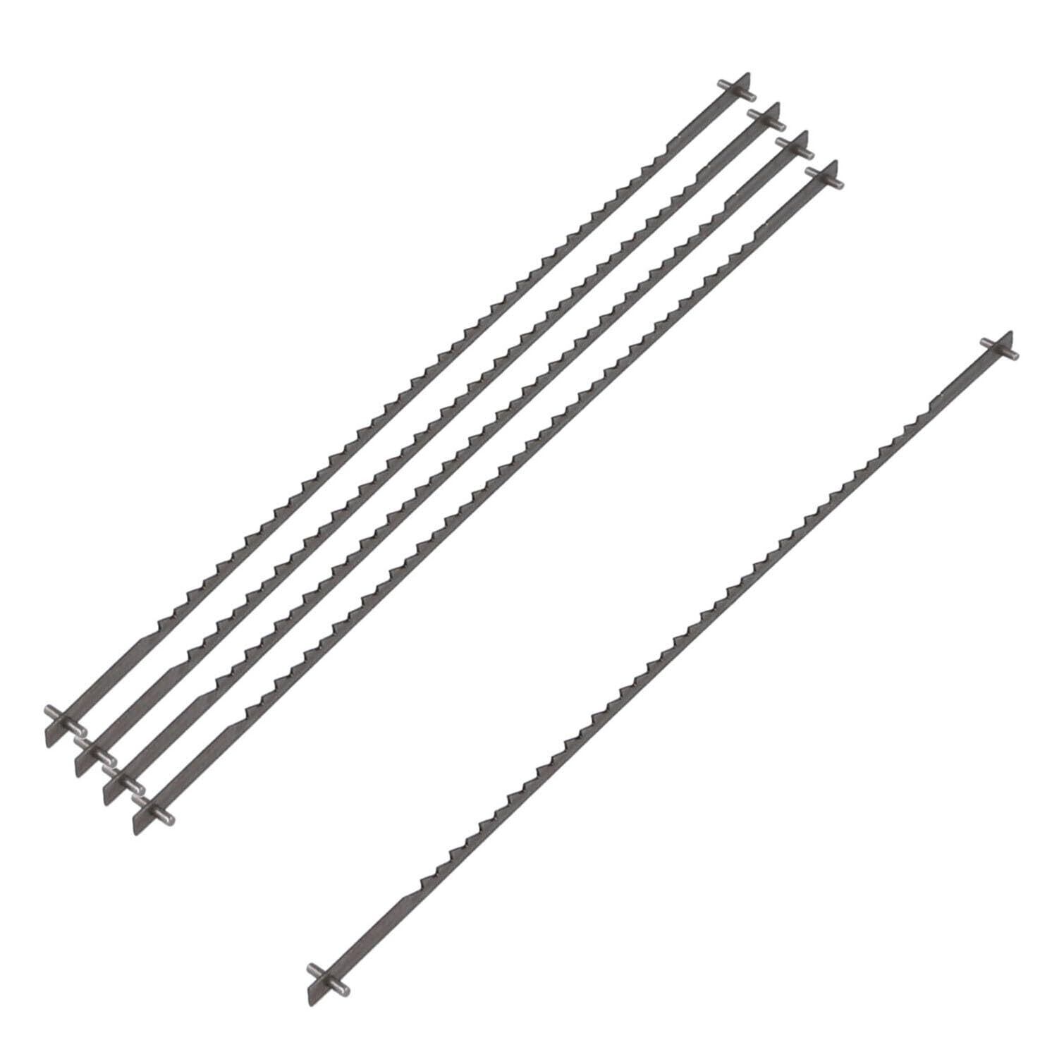「この糸ノコ刃は、5本入りでお得にまとめ買いできるため、いつでも必要な時にすぐに交換が可能です。簡単に取り付けられる設計になっており、初心者から熟練の職人まで、幅広いユーザーが扱いやすいよう配慮されています。スムーズな切断作業をサポートします!」
