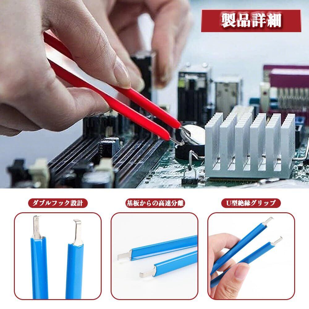 「本製品は耐久性に優れたプラスチックグリップを採用しており、長時間の作業でも疲れにくく、しっかりとしたフィット感を提供します。コネクターを引き抜く際に安全性を考慮した設計になっており、基板を傷める心配がありません!」