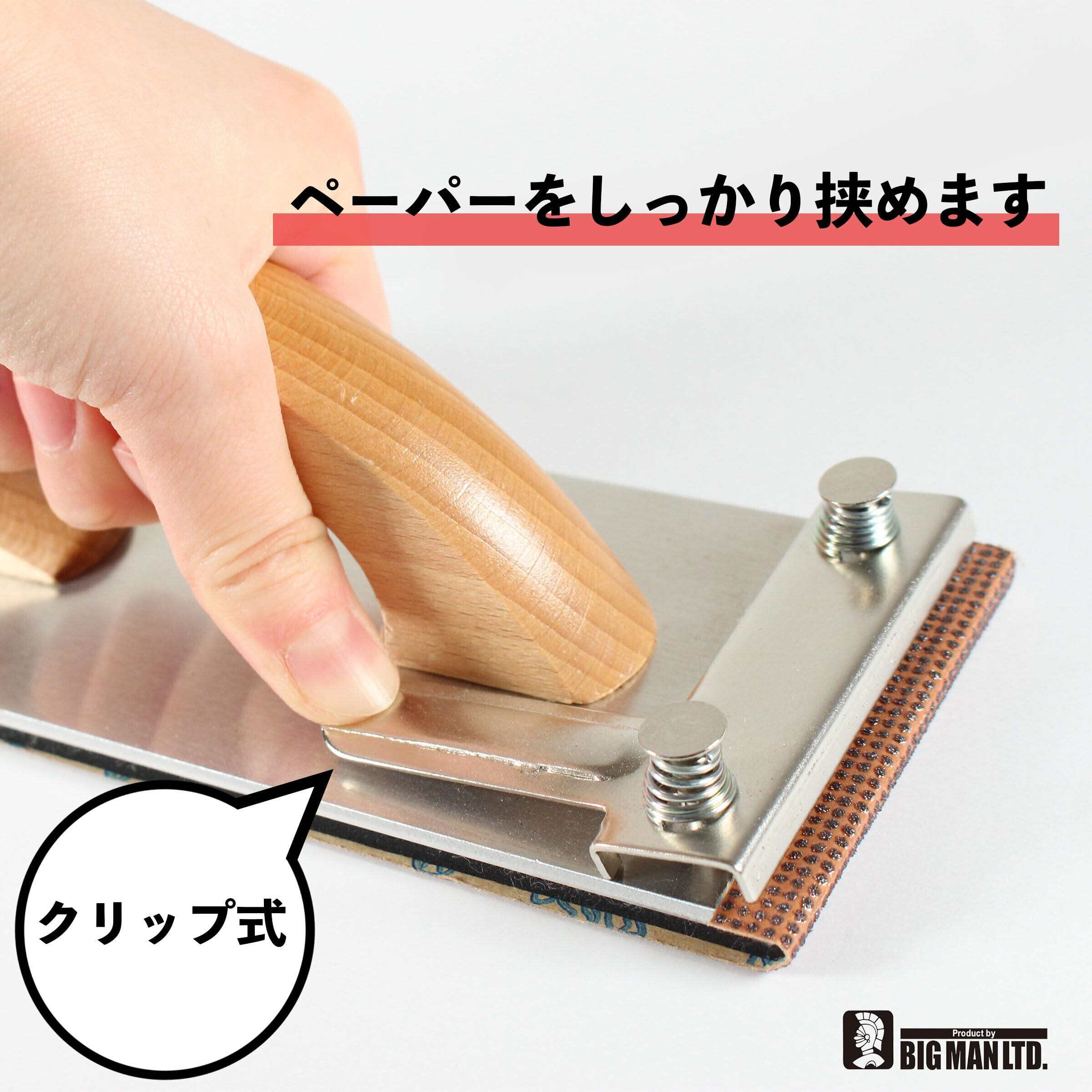 サンドペーパーを前後のワンタッチレバーではさみ込むだけで取付ができ、手に馴染みやすい木製グリップは研磨作業の負担を軽減してくれます。