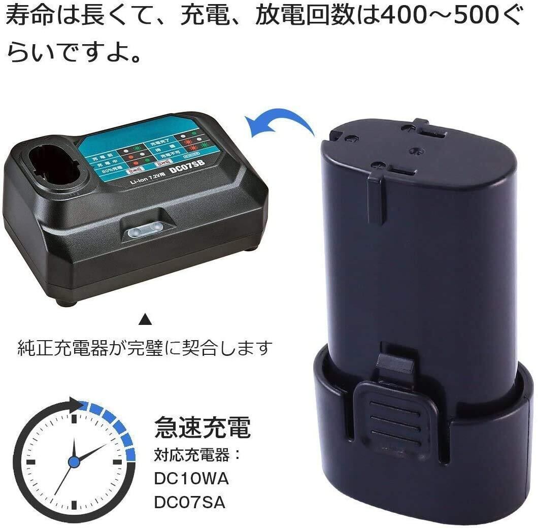 「本製品は、BL7010、BL720、など幅広いマキタ製品に互換性があります。使用する充電器も純正品とまったく同じ方法で充電できるため、手間いらずでお使いいただけます!」