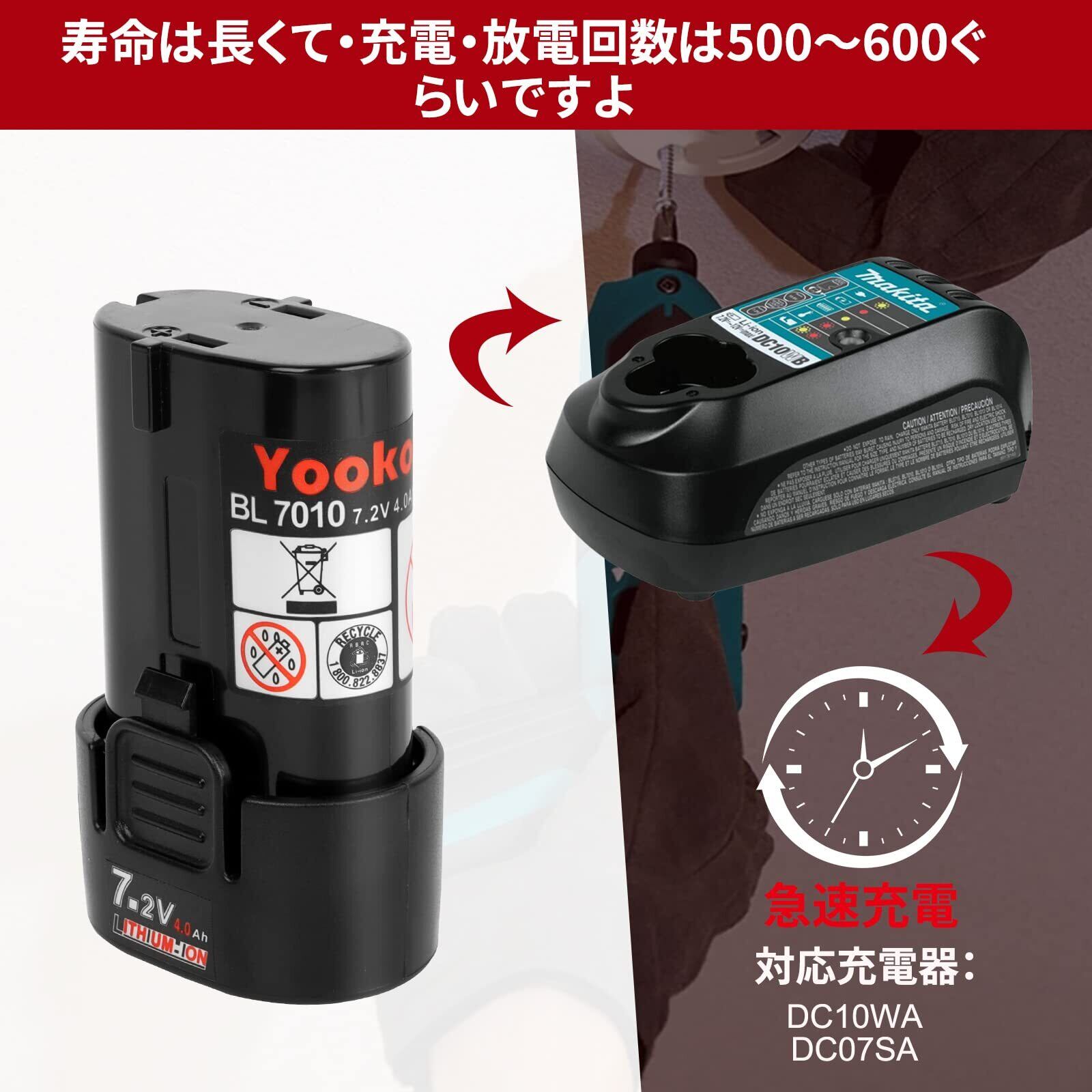 「『BL7010』は、多くのマキタ製電動工具に幅広く対応しています。充電器は、互換性があるもので充電可能ですので、使い勝手が良く、様々な機器で活用できます!」