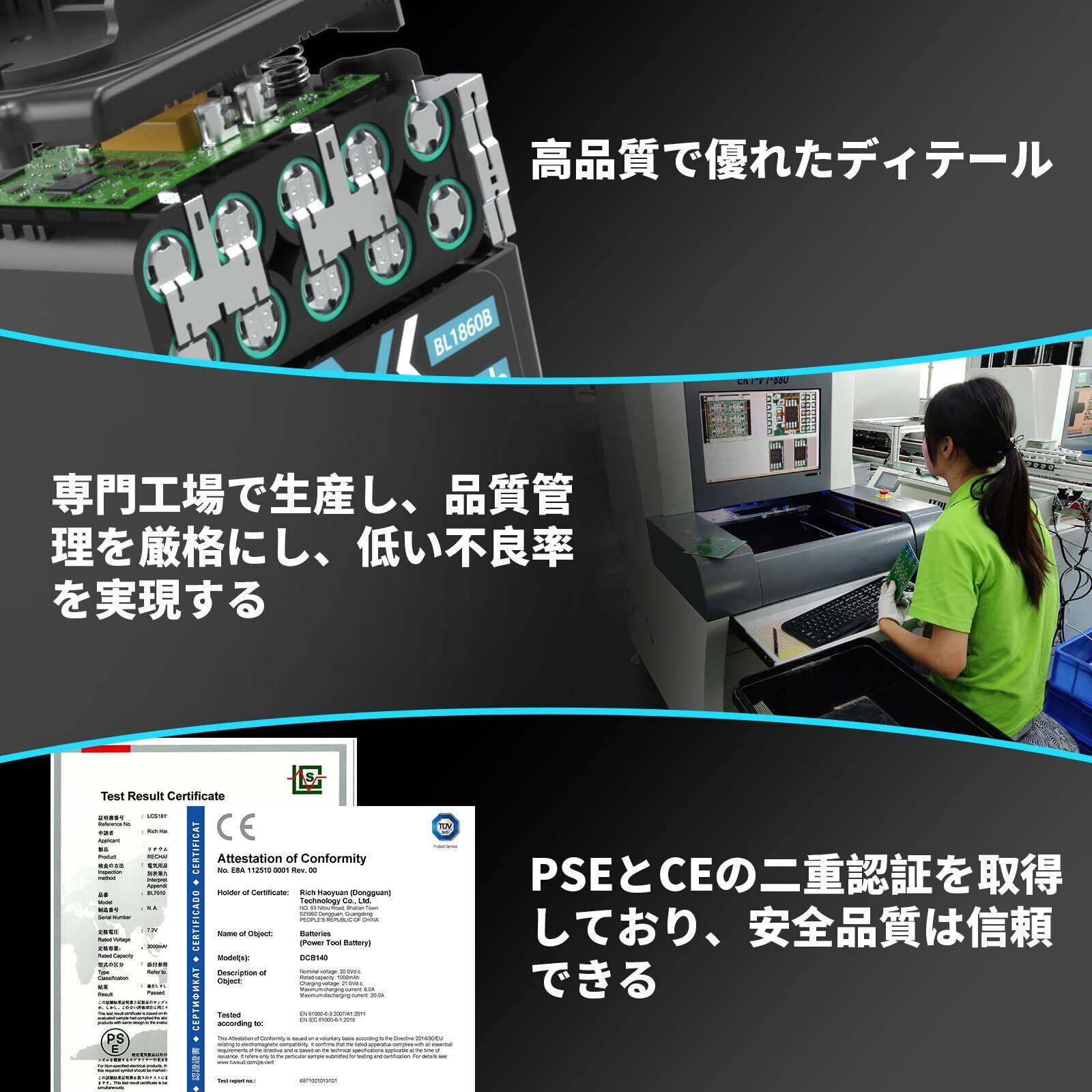 【高品質の安全】電気用品安全法に基づくPSEマーク取済。本製品では最新なセルを採用し、大型基板を搭載し、各セル監視システムを搭載されて、基板に過電流保護、過充電防止、過放電防止、短絡保護、温度保護の回路保護制御が設置されておりますので、ご安心に使用頂けます。ISO 9001認証の厳格な管理の下で、工場は最も良い設備を使って製造し、発売前に製品に対して十分な品質検査を行った。本製品は12ヶ月のメーカーを提供しています。もし商品に問題があれば、できるだけ早くに連絡してください。