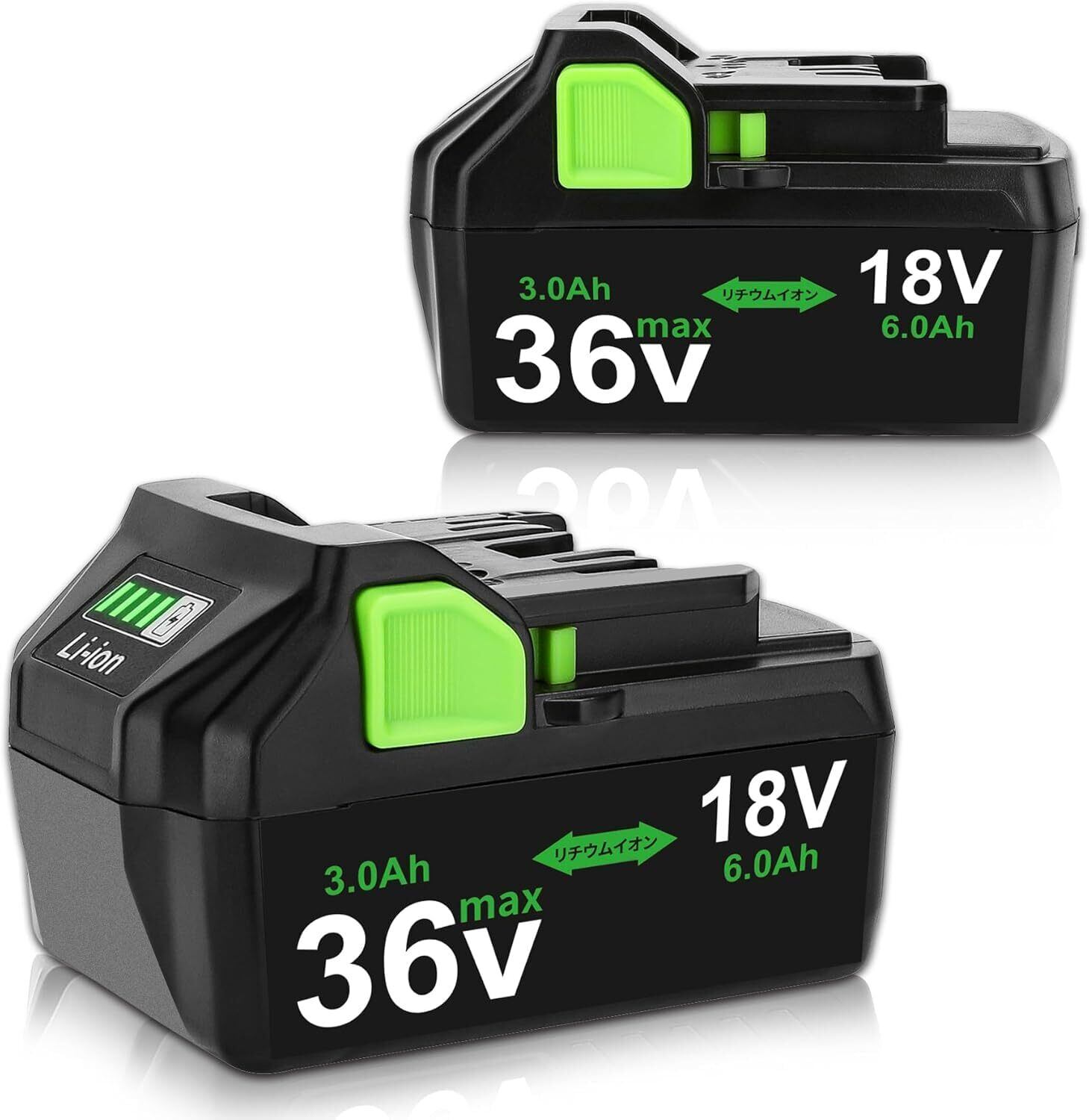 Reoben互換 BSL36A18 ハイコーキ 36V 互換バッテリー 2個 36v/18v 3000mAh/6000mAhに自動切替 互換 日立 リチウムイオン インパクト 電動工具用 バッテリー BSL36A18/BSL36B18/BSL36C18/BSL36A18B 従来の 18V 製品互換可能 グリーン