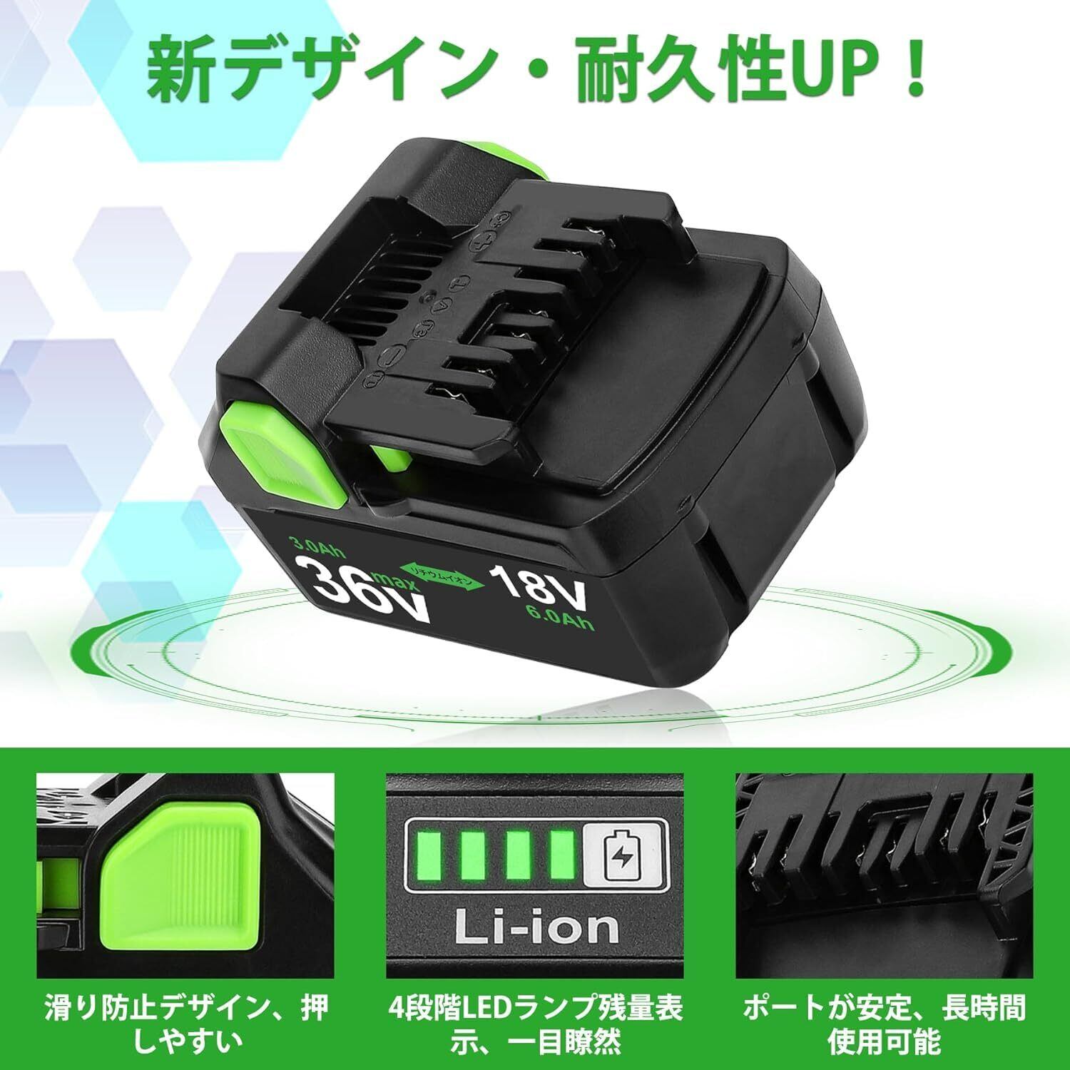 【日立 36V/18v バッテリー 互換】互換日立の36Vマルチボルトシリーズと従来の18V製品を互換できます。BSL36A18バッテリーは36v/18vのバッテリを自動的に切り替え、より効率的に作業をこなす!ご注意:BSL3620、BSL3626、BSL3660対応製品にはご使用になれません。