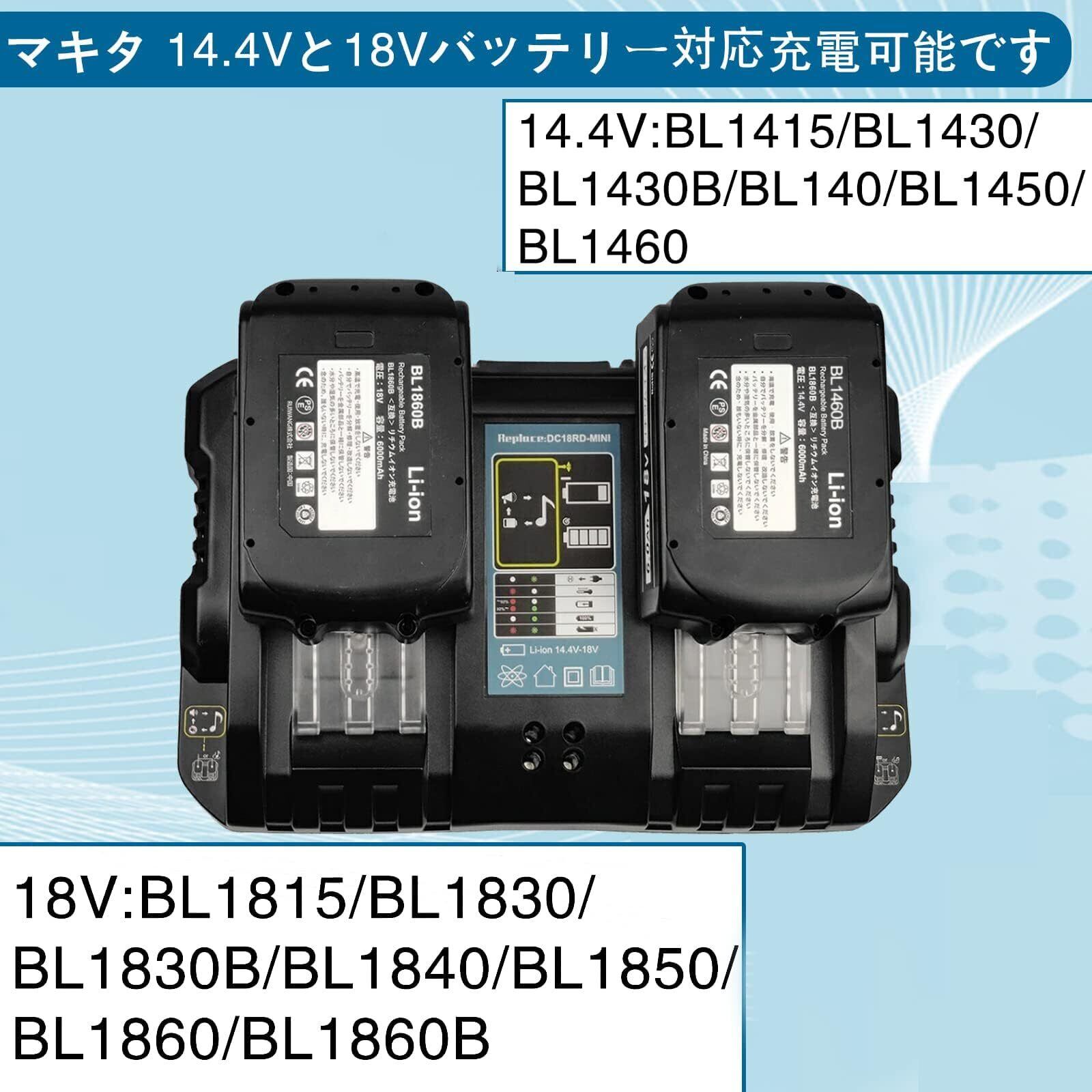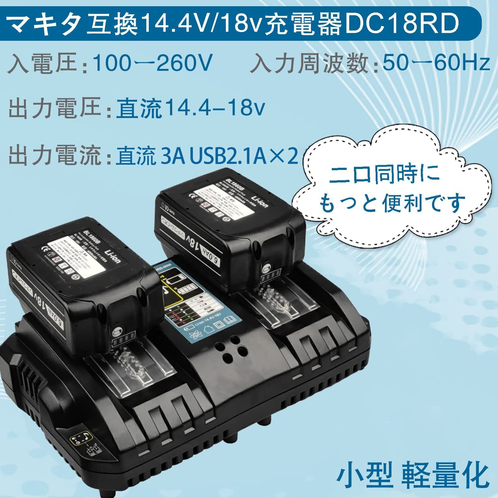 VANKO 互換 マキタ 充電器 2口 同時に充電可能 DC18RD 小型 軽量化 マキタ 2口充電器 USB端口付き 14.4-18v バッテリー BL1815N BL1820B BL1830B BL1860B BL1415N BL1420B BL1430B BL1460Bなどに充電可能 連続充電可 メロディーでお知らせ PSE認証済