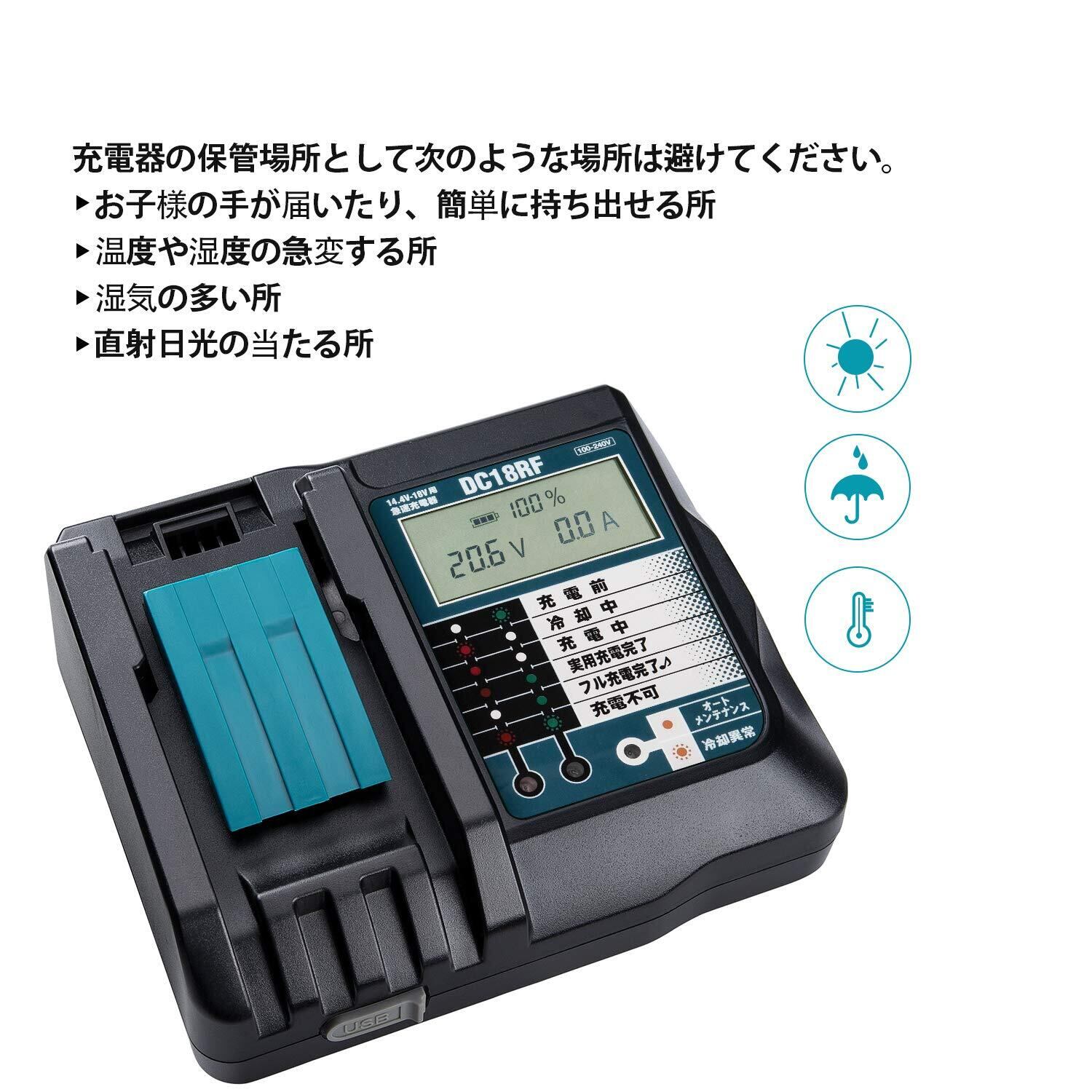 WaxPar 互換 DC18RF 充電器 マキタ 冷却ファン付き リチウムイオンバッテリー用 充電用USBポート付, 液晶付き 【バッテリ別売】