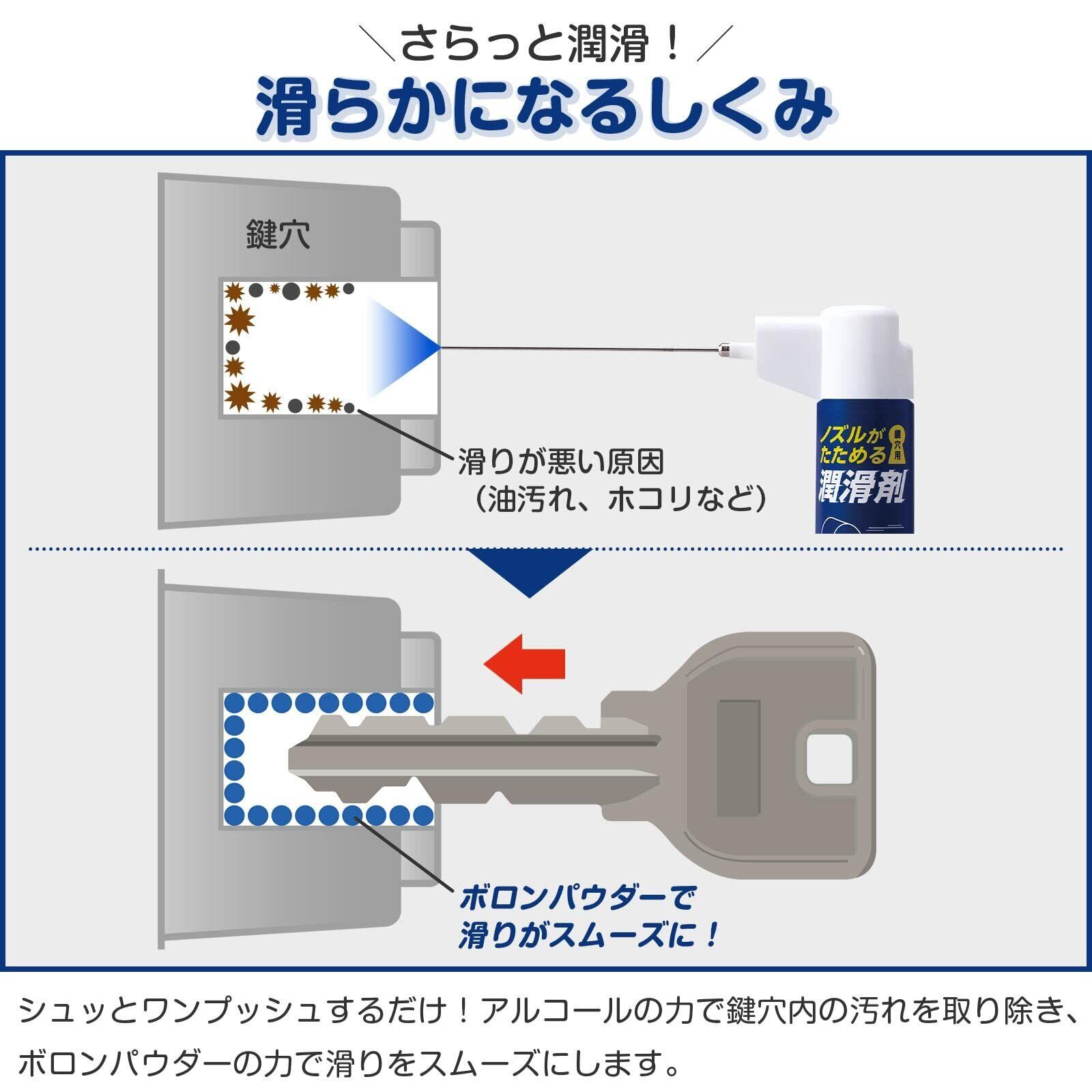 滑りが悪くなった鍵穴にワンプッシュするだけ!