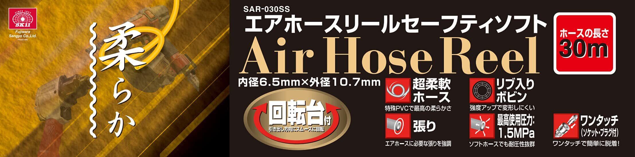 SK11(エスケー11) エアーホースリール セーフティソフト 特殊PVCで柔らかい 回転台付 30m SAR-030SS