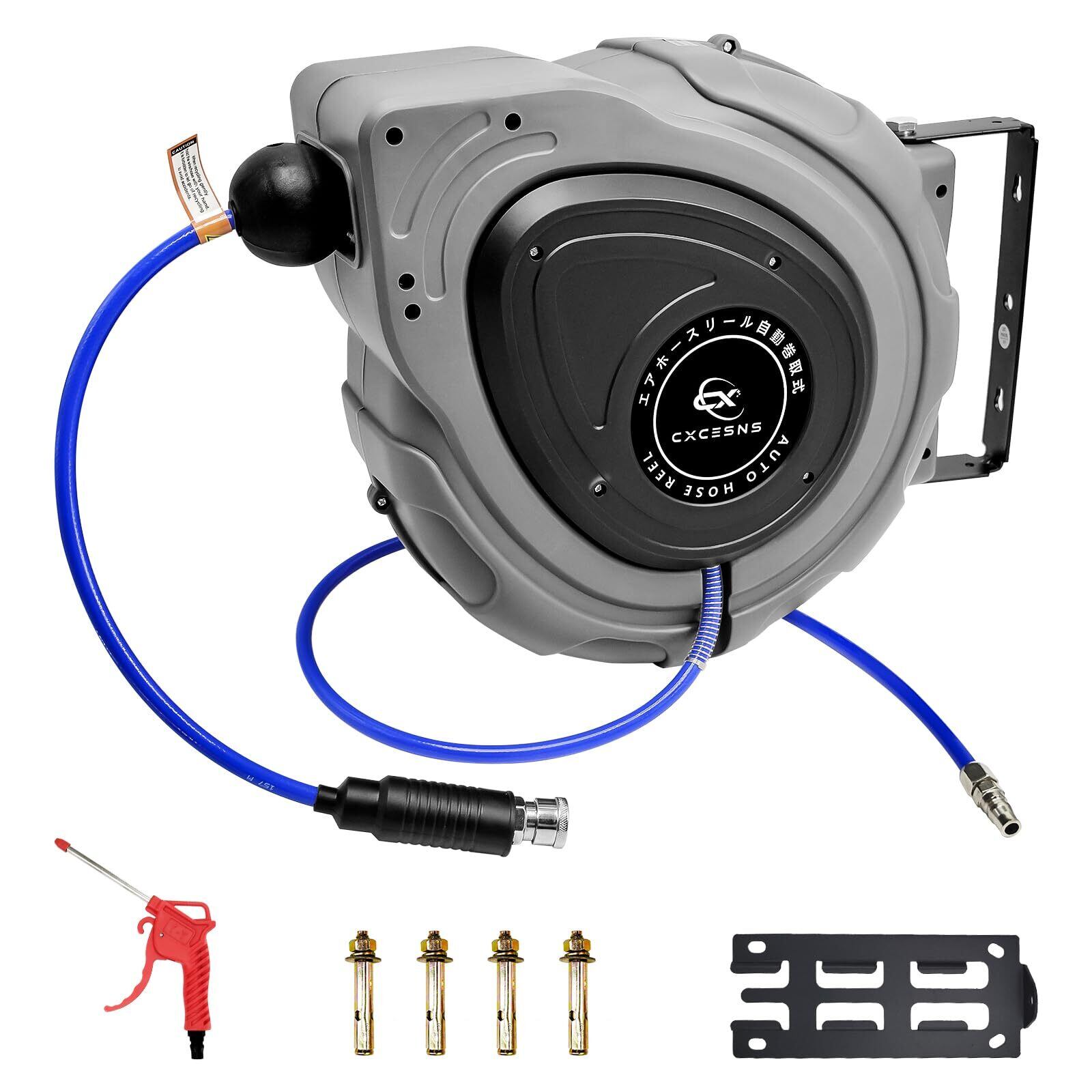エアホースリール 20m 壁掛け 天吊り式 自動巻取式 自動巻き上げ エアーリール オート180°回転可能 ホース ブラケット付 引き込み式 空気圧工具 (外径12mm×内径8mm)