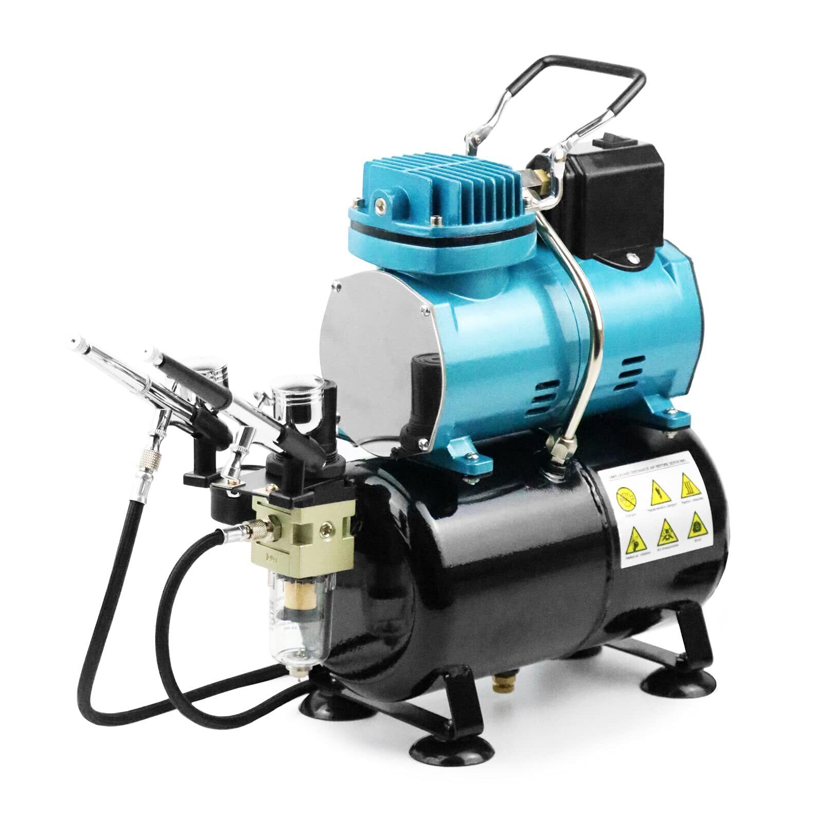 【エアーブラシスターティングキット】2本重力式エアブラシ(1本0.3mmと1本0.5mm) 3Lタンク、冷却ファン付きエアーブラシ用ミニエアーコンプレッサーとのスターターキット初心者と熟練者の方でも気軽に使いやすいタイプです。