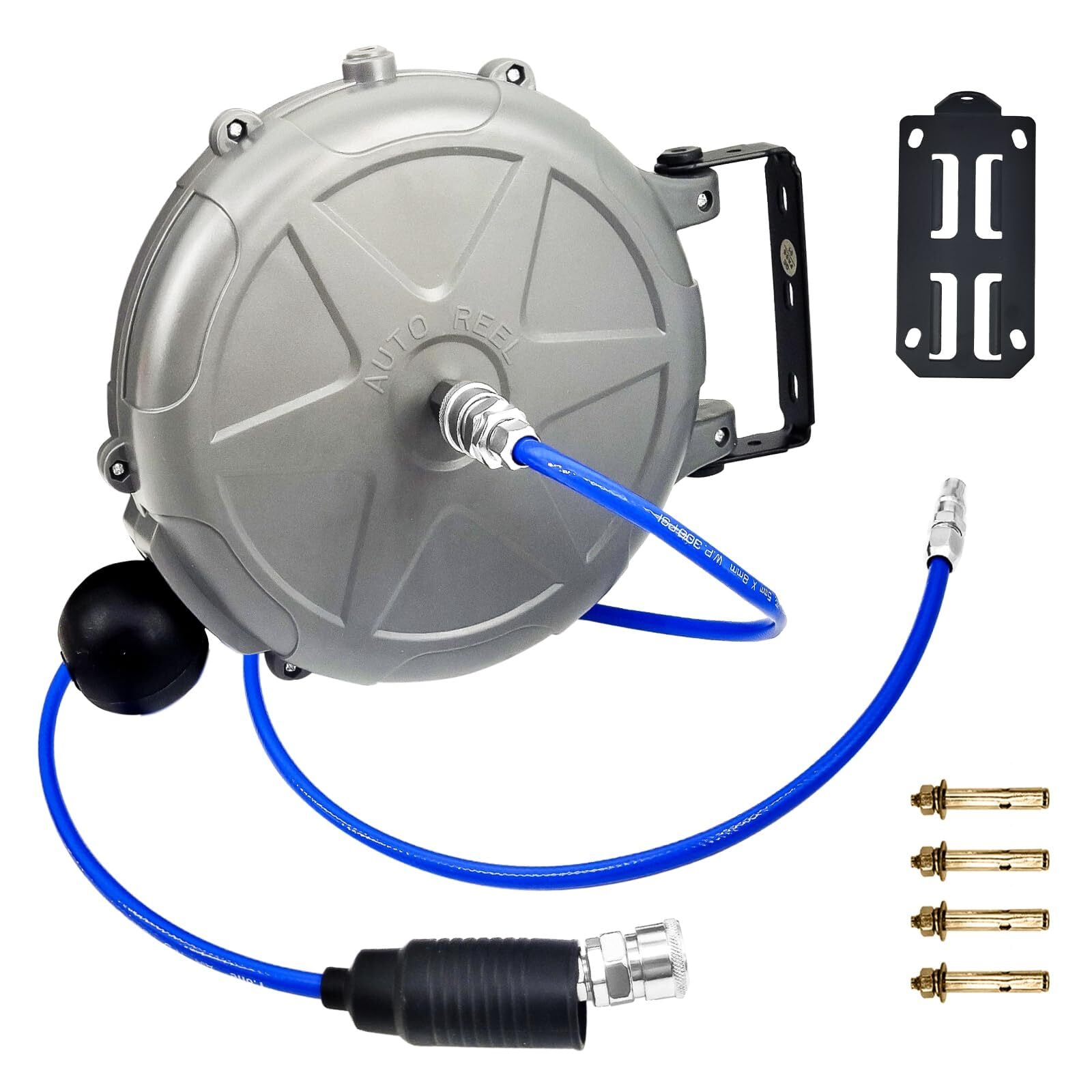 エアホースリール 10m 自動巻取式 自動巻き上げ ブラケット付 天吊り式 壁掛け 180°回転可能 エアホース外径φ8mm×内径5mm オート引き込み式 空気圧工具