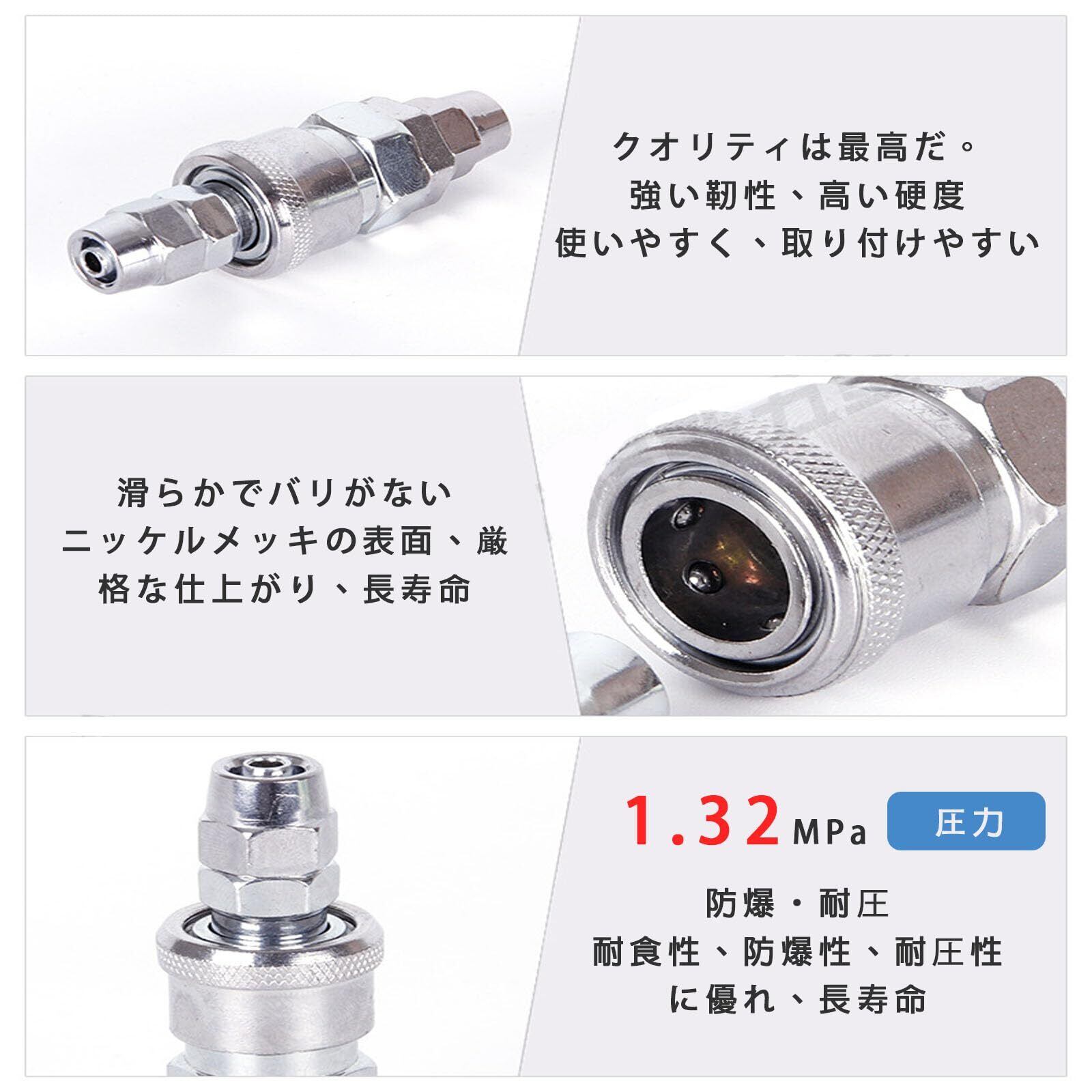「このエアーカプラーセットは、エアーコンプレッサーや各種エアーツールなど、様々な用途に対応可能です。DIYやプロの作業現場など、さまざまなシーンで活躍すること間違いなしの商品です!」