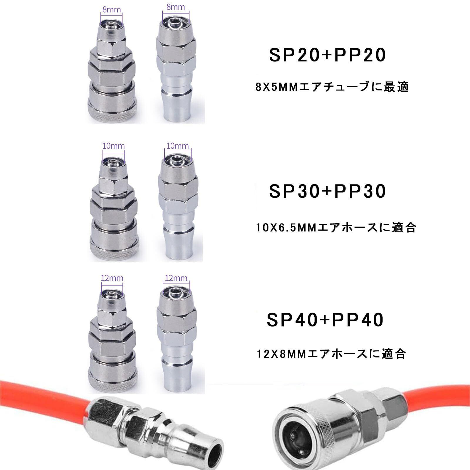 【製品サイズ】同じサイズの3本セット。 3サイズ展開。SP20+PP20は外径8ミリ内径5ミリのホース。SP30+PP30は外径10ミリ内径6.5ミリのホース。SP30+PP30は外径12ミリ内径8ミリのホース。