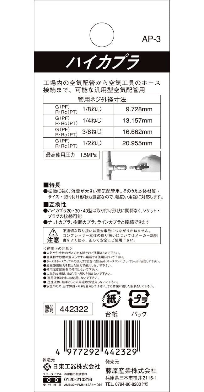 「このハイカプラは、エアーコンプレッサーや各種エアーツールに幅広く対応しています。プロフェッショナルから一般ユーザーまで、様々なニーズにお応えできるアイテムです。実績のある製品なので、安心してご利用いただけます!」