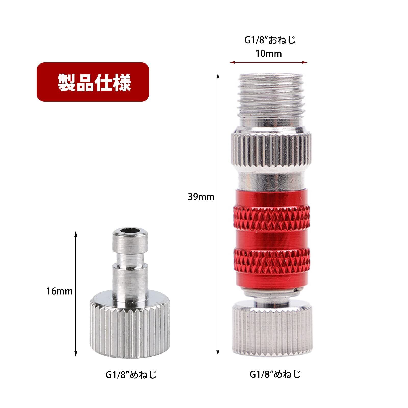 EUSTACEエアブラシ クイックジョイント エアー ジョイントセット ワンタッチジョイント エアブラシ用ジョイント 1/8 クイックチェンジジョイント カプラー プラグ2個付き レッド