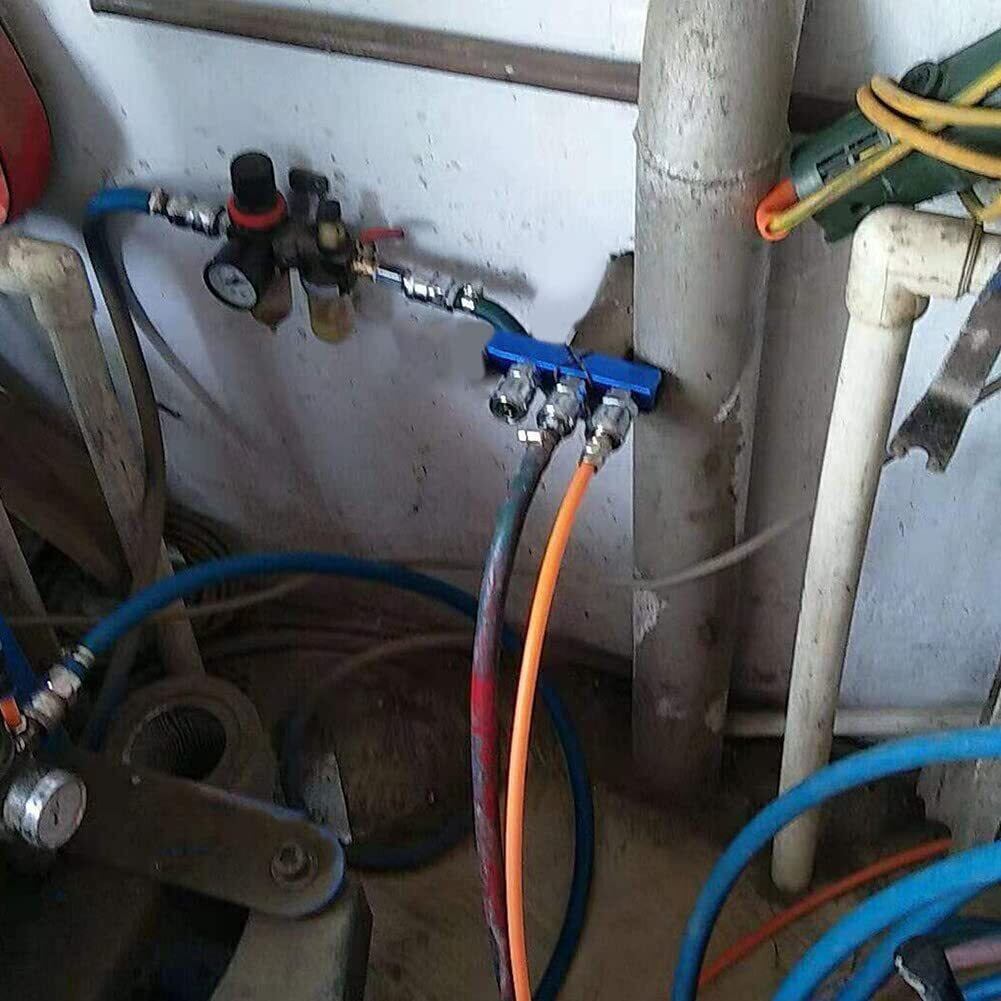 「この3分岐カプラーは、エアコンプレッサーを活用し、ペイント、タイヤの空気入れ、さらには各種エアーツールの運用に対応可能です。多用途な設計により、あらゆるシーンでその効用を発揮します!」