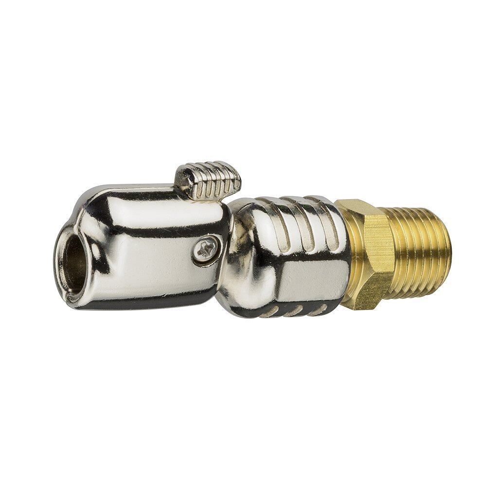 タイヤエアーチャック ワンタッチタイプ 1/4は、シュレーダータイプのタイヤバルブに押し込むだけでロック機構により装着ができます。