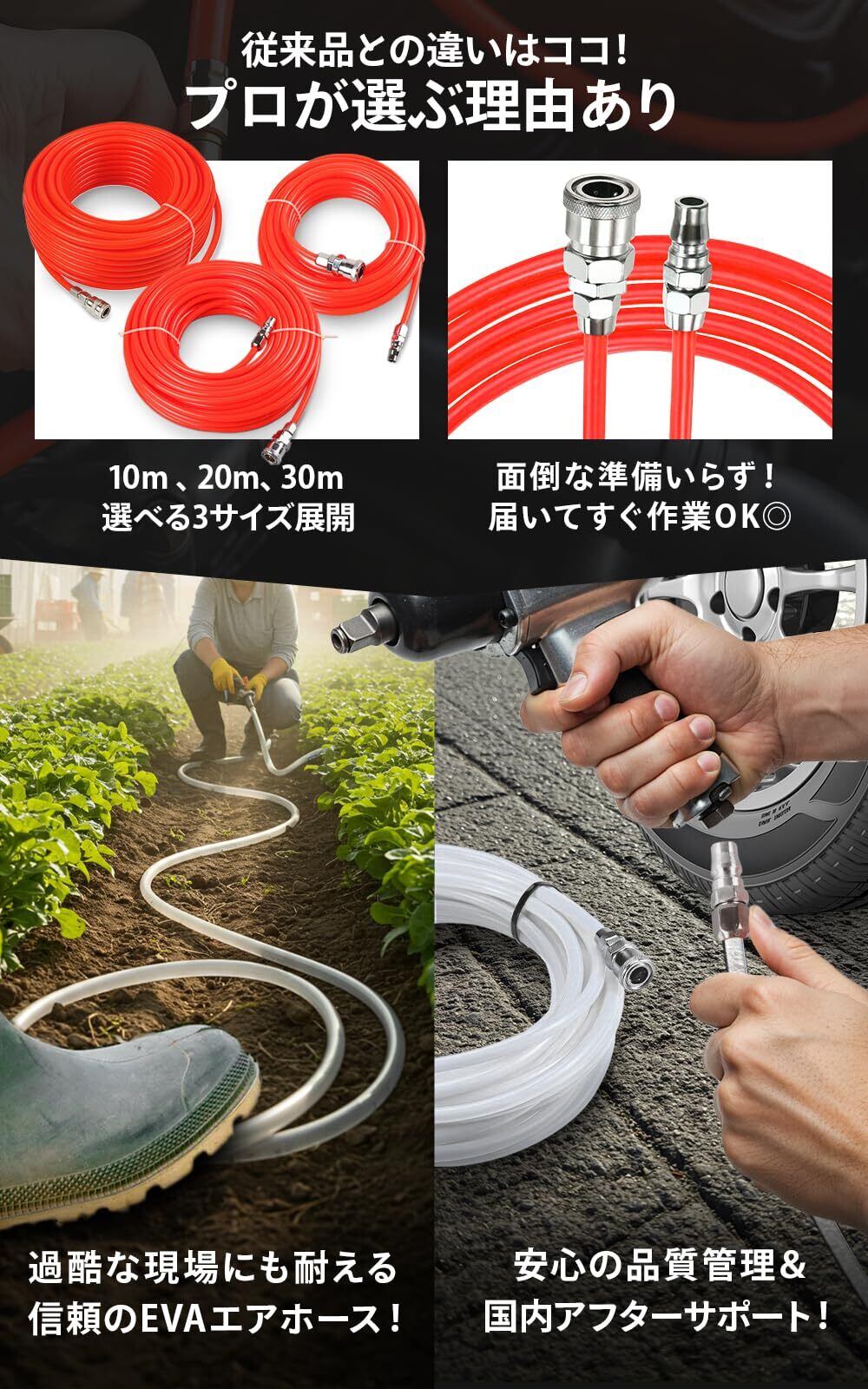 ■軟質塩化ビニールに比べ、耐圧性能が高いEVA樹脂を使用。しなやかで柔らかく、耐油性、耐摩耗性、高圧にも優れたエアーコンプレッサー用ホースです。