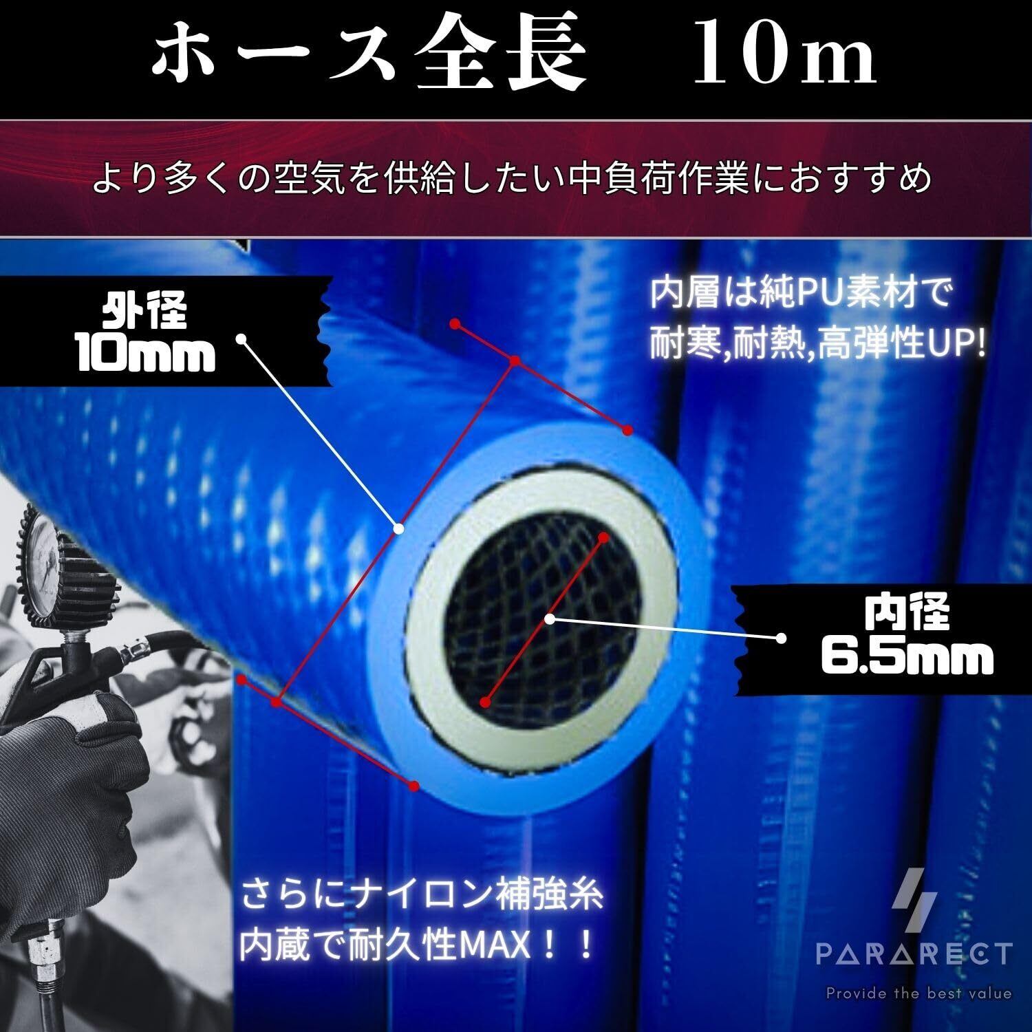 ブレードホース エアーホース 5m コンプレッサー 工具 耐圧 ホース チェックバルブ ジョイント付き 青 ブルー 外径10mm 内径6.5mm