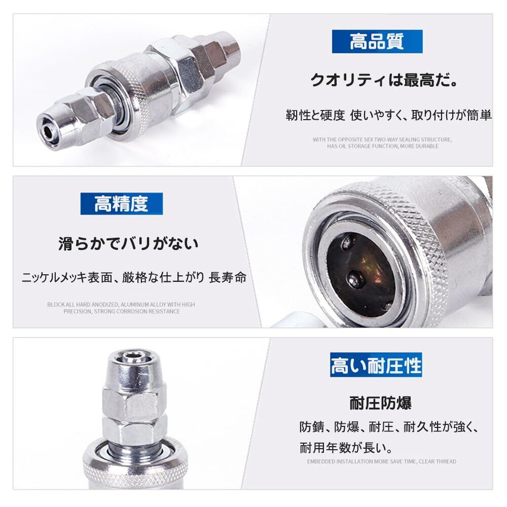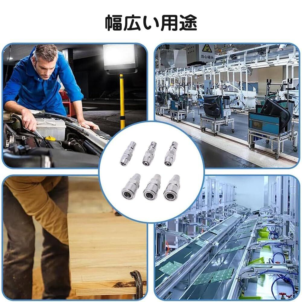 【高品質の】:当社のエアーカプラーは最高使用圧力1.32MPaを誇り、厳格な品質管理に基づいて製造されています。空気工具、各種空気配管、空気圧機器など、様々な用途に適しており、お客様のプロジェクトに確かなパフォーマンスを提供します。