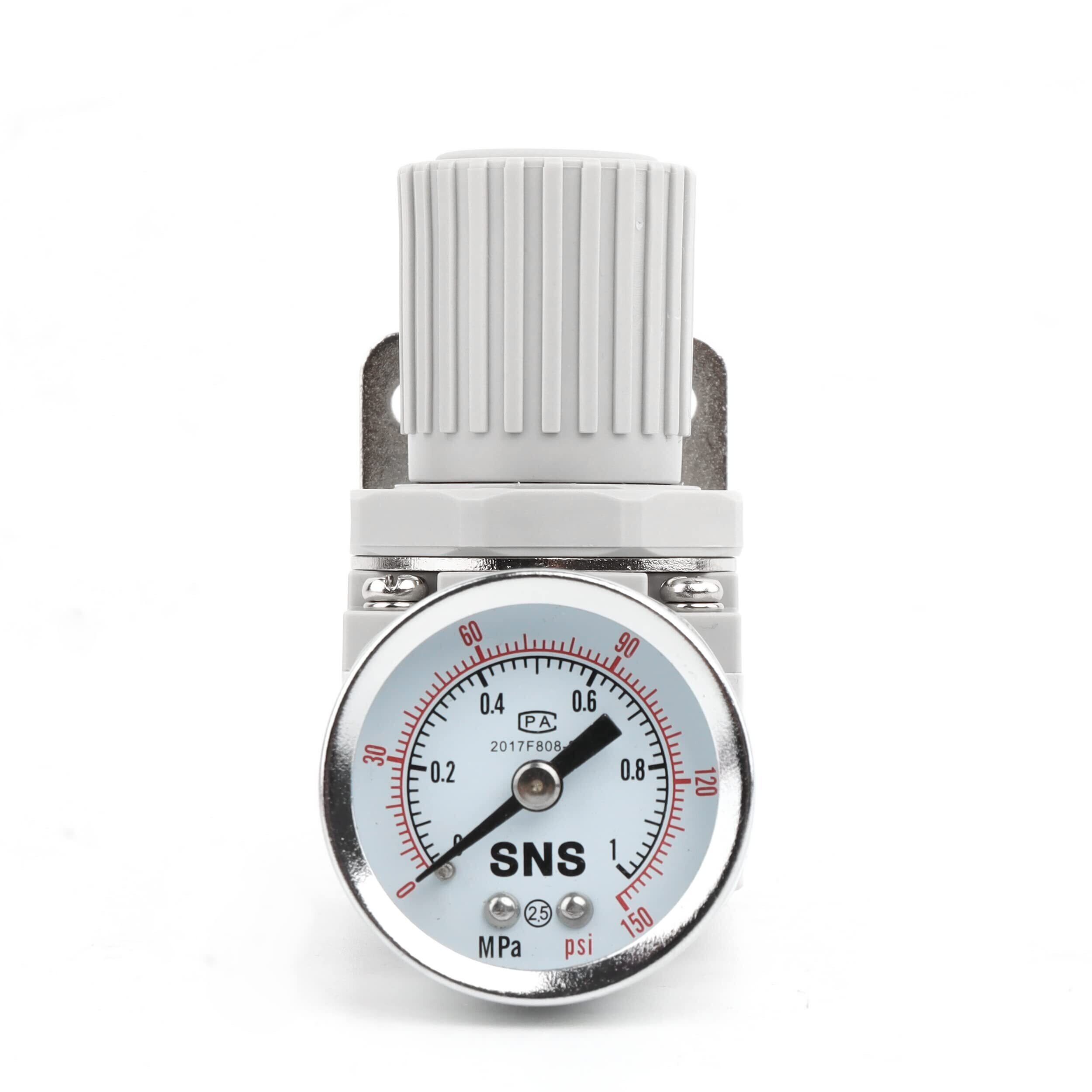 SNS SAR2000-02 めねじ 1/4''PT 空気圧レギュレータ 0.05-0.85 MPa 調整可能、ブラケット、ゲージ