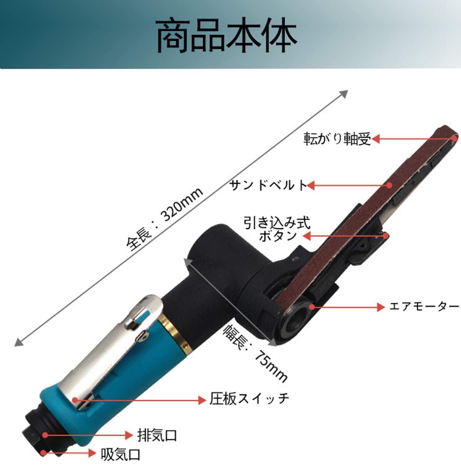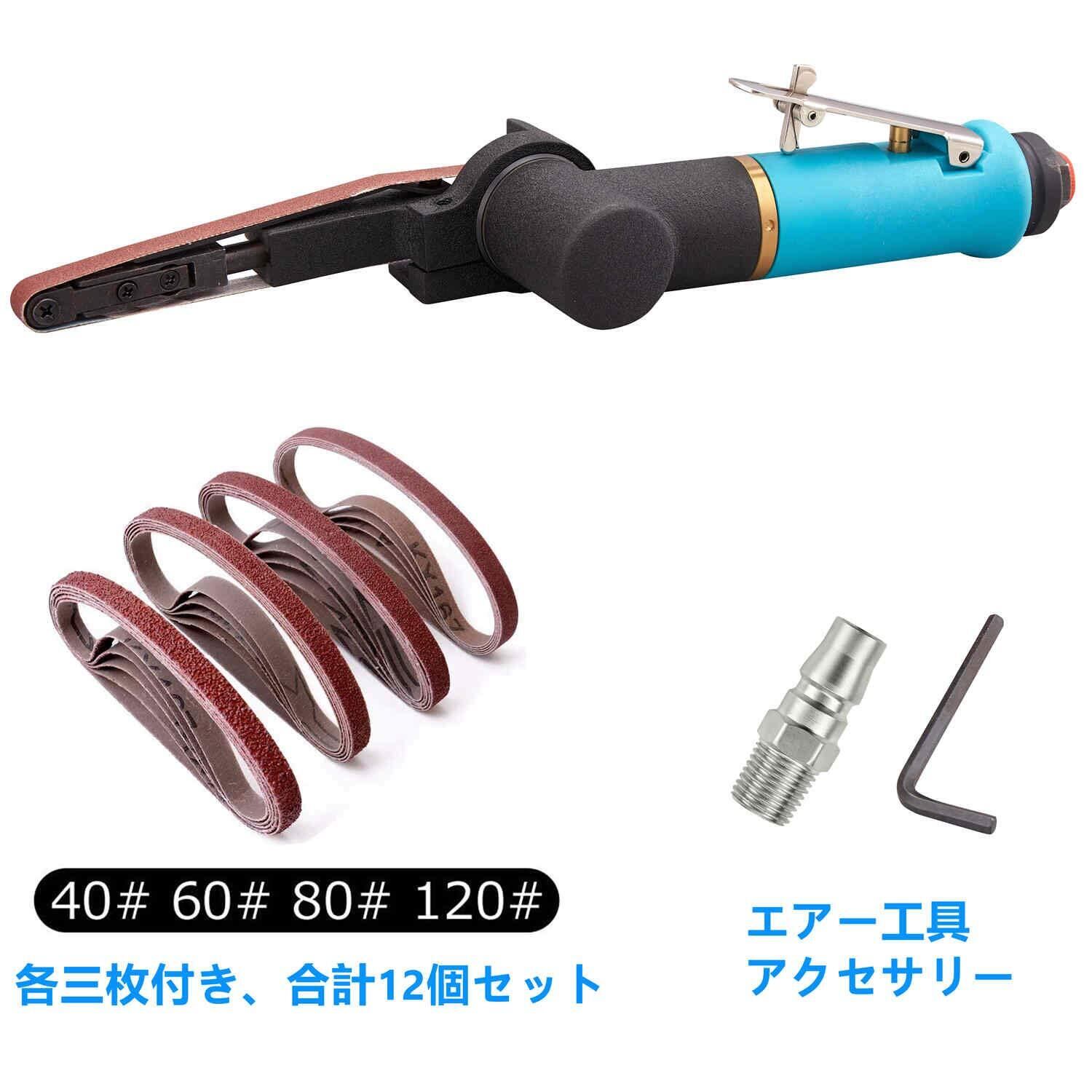 エアーベルトサンダー 替えベルト4サイズ(40 60 80 120)合計12本付き 10×330mm エアーツール 多方向回転可能 金属加工や削り出し作業 溶接部品の研削、ばり取り、面取り 多機能 DIY