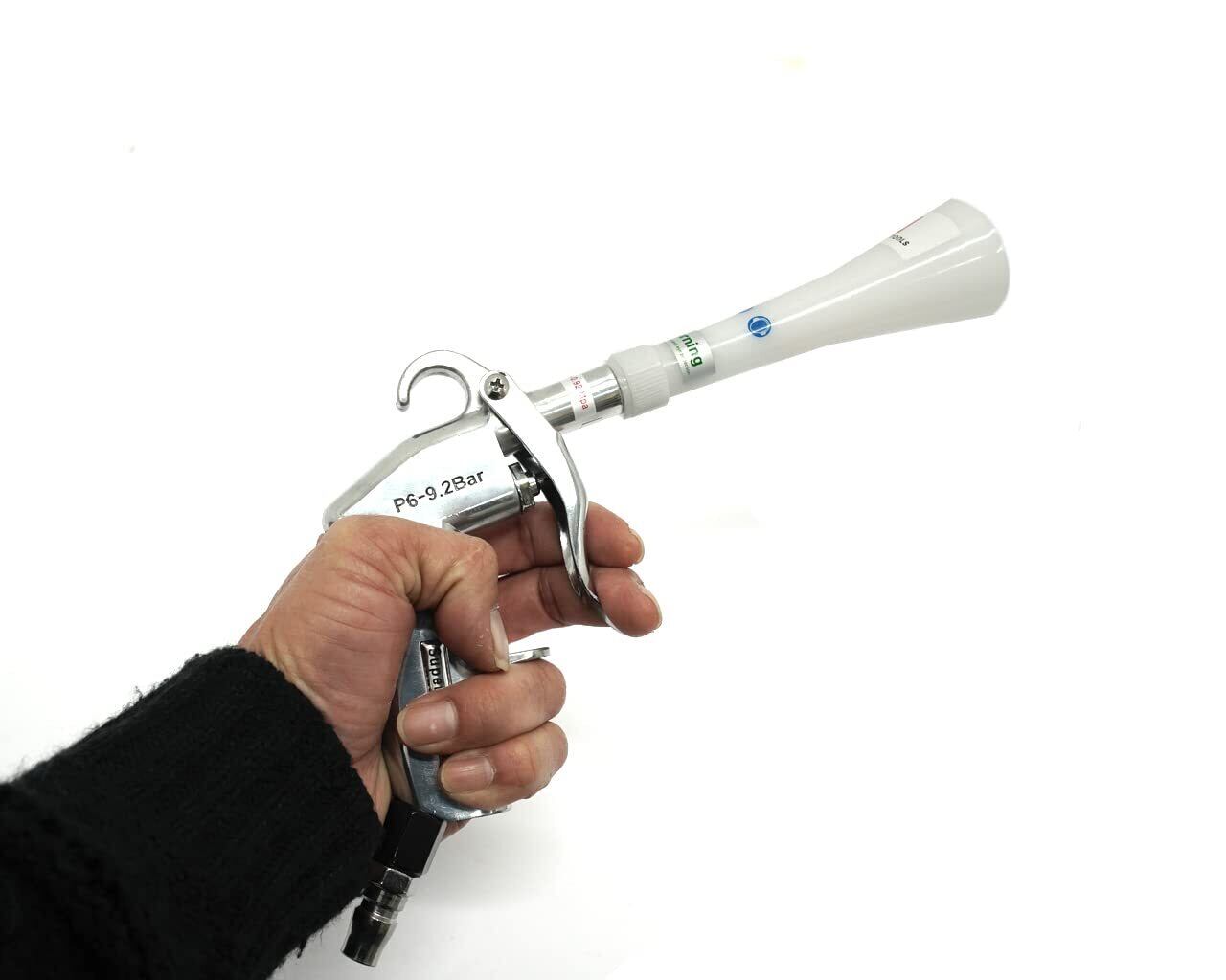 「トルネーダーガンは、さまざまな用途で活躍します。精密機器のクリーニングや車のメンテナンス、工場など業務用のシーンでもその性能を発揮します。また、簡単な設定でエアーの強弱を使い分けられるため、幅広い使用シーンに対応可能です!」