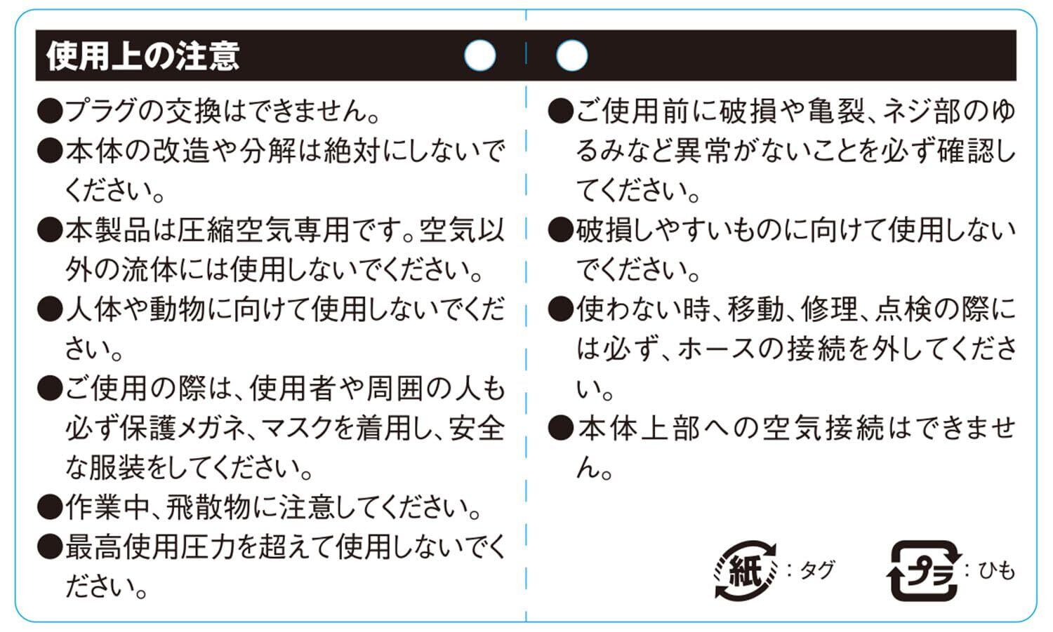 ノズル:増風ノズル、空気取入口:高圧プラグ、使用流体:圧縮空気