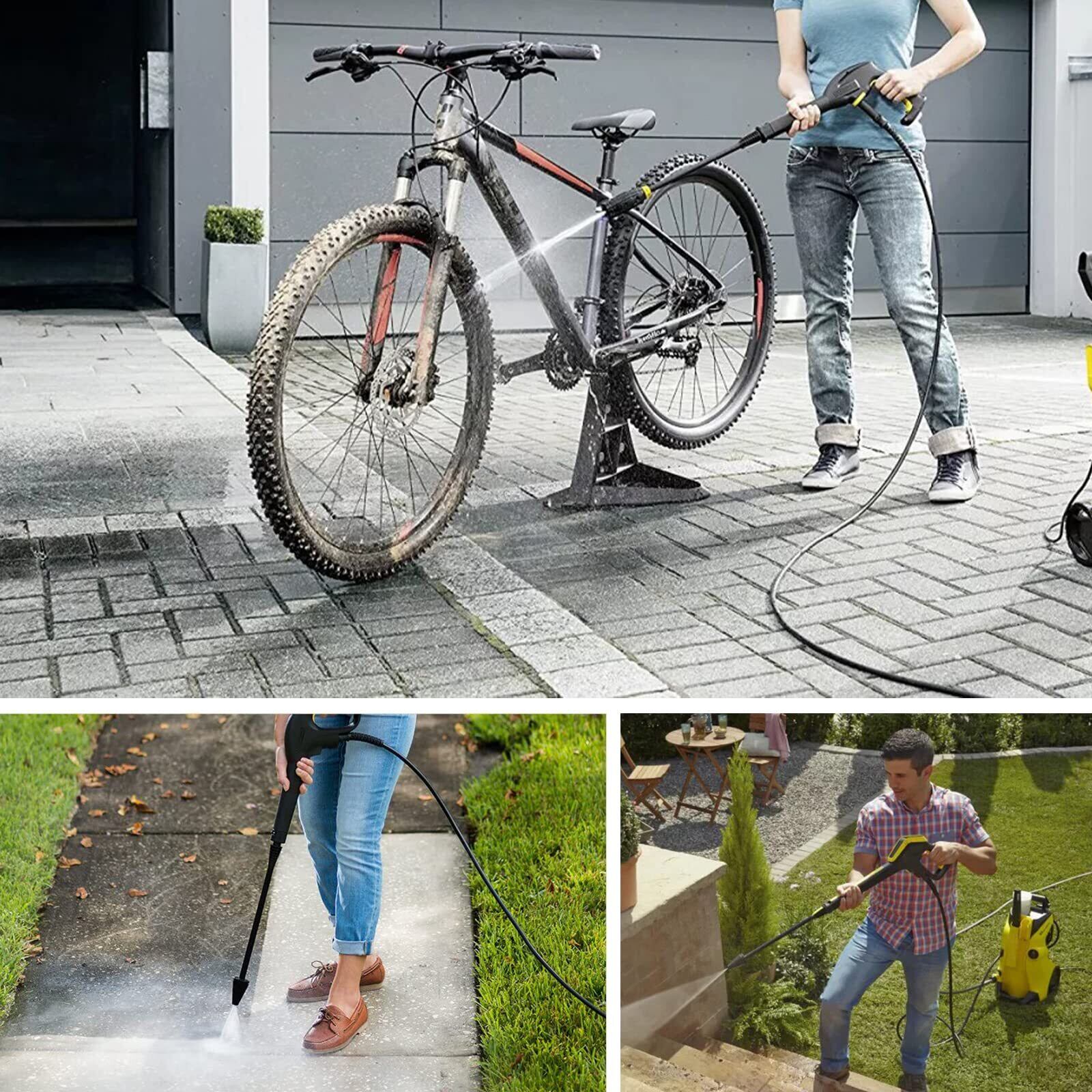 「この高圧洗浄機ホースは、ケルヒャーK2に完全対応し、一般的な家庭の清掃から業務用の幅広いニーズにお応えします。車やバイク、デッキ、外壁などの洗浄に最適で、頑固な汚れをしっかりと落とします!さまざまなシーンでその力を発揮することでしょう。」
