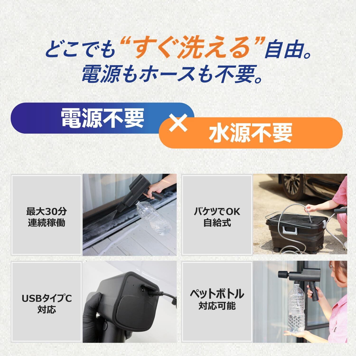 「新たに搭載されたペットボトル給水機能により、いつでもどこでも手軽に水を供給可能!水道がない場所でも、バケツや残り湯を使用しての洗浄が可能になります。特別な給水設備も必要なく、キャンプやアウトドアでも大活躍!」
