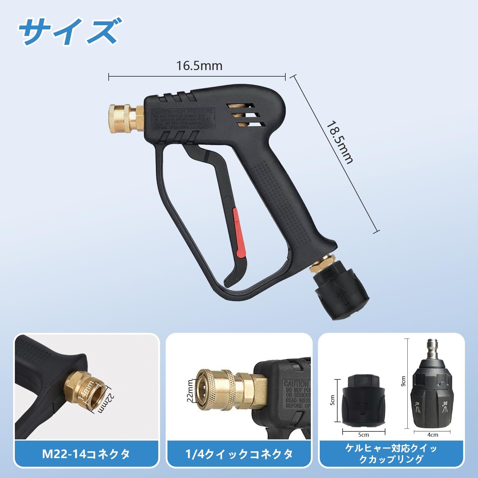 【要確認】対応機種:ケルヒャーKシリーズ、Karcher K MINI K2 K3 K4 K5 K7 JTKのクイックコネクターとM22-14mmめねじジョイントに対応できます。Generac、Simpson、Briggs Stratton、Craftsman、RyobiなどのM22-14mmホースを備えた圧力洗浄機と互換性があります。 パッケージ内容:ケルヒャー高圧洗浄ショートガンⅹ1、5in1スプレーノズルⅹ1、六角レンチⅹ1 (古いモデルのクイックコネクター、OC3、KHB5、業務用HDシリーズには接続不可。高圧洗浄機との互換性を確保するように、ご購入前に、アダプターの接続画像をご確認するか、カスタマーサービスからお問い合わせください。)