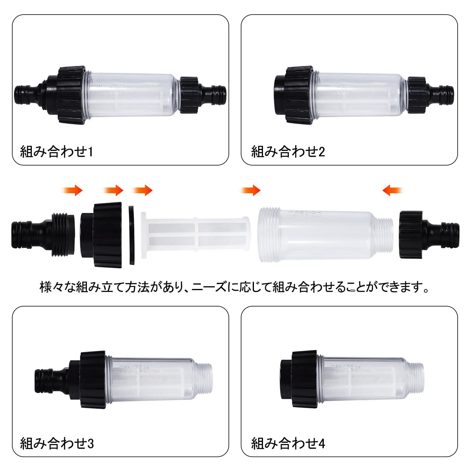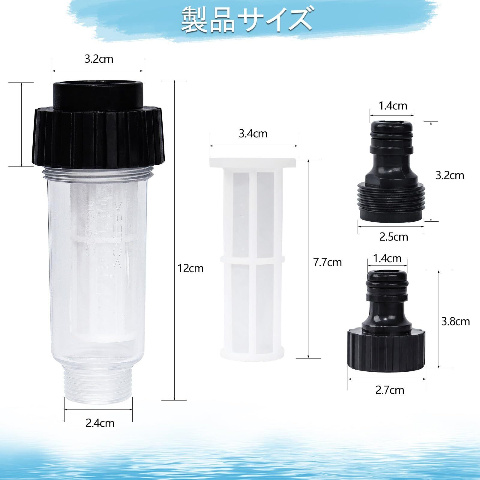 【セットの内容】素材:PVC。高圧洗浄機フィルター*1、内糸継ぎ手*1、外糸継ぎ手*1、交換用フィルターネット*2